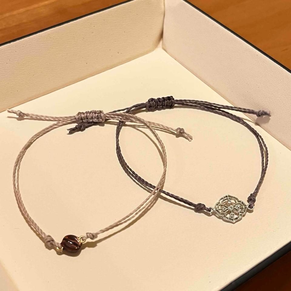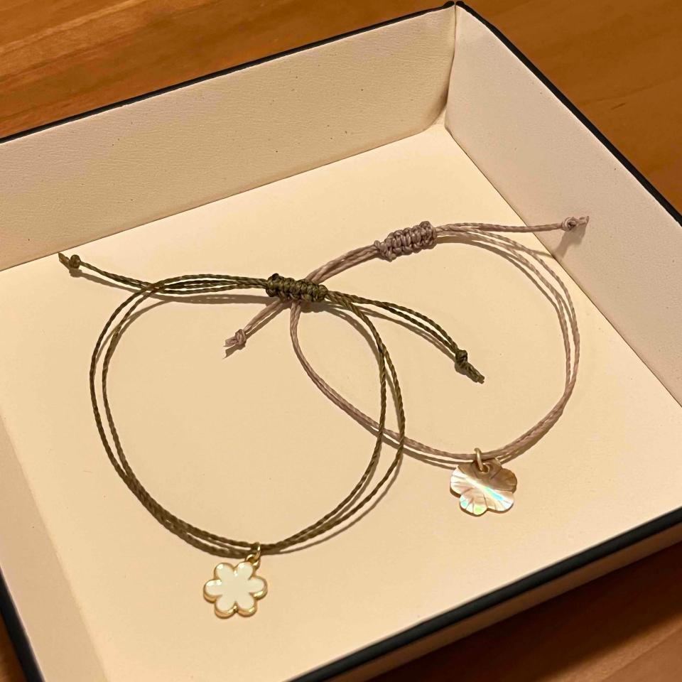 「LINHASITA社製 ワックスコード使用、ニュアンスカラーがかわいいブレスレットです。シンプルなデザインで重ねづけにもおすすめです♪」