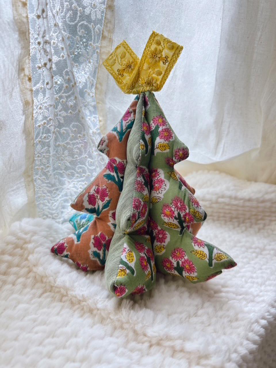 クリスマスも近づいてきてますね。「Lino accessory」さんの布地のツリー。「インドの伝統工芸品のハンドブロックプリント生地を使ってクリスマスツリーを作りました。ハンドブロックプリントは、インドの職人さんが木型に染料を付け、それを白い布に一つ一つ手押しで柄を付けた生地です。手作業の温もりを感じる世界でたった一つのツリー🎄をハコイチで初めて販売しますので、お気軽にお手に取ってご覧ください。」