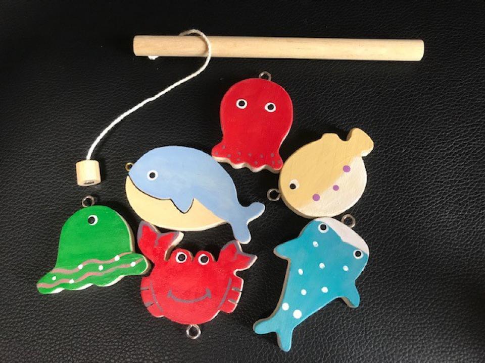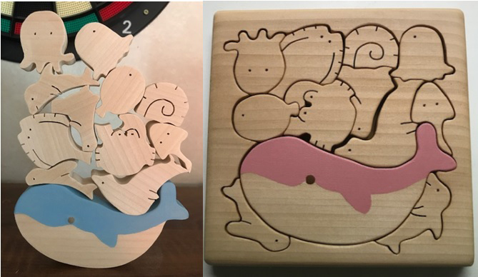 一年ぶりの出展「N&N」さん。編み物も登場です。「今回はちょっとしたプレゼントにもなる色つきお魚釣りと、バランスゲームにもなる組み木パズルと編み物をご紹介します。他にもクリスマス関係の作品もご用意しています。」