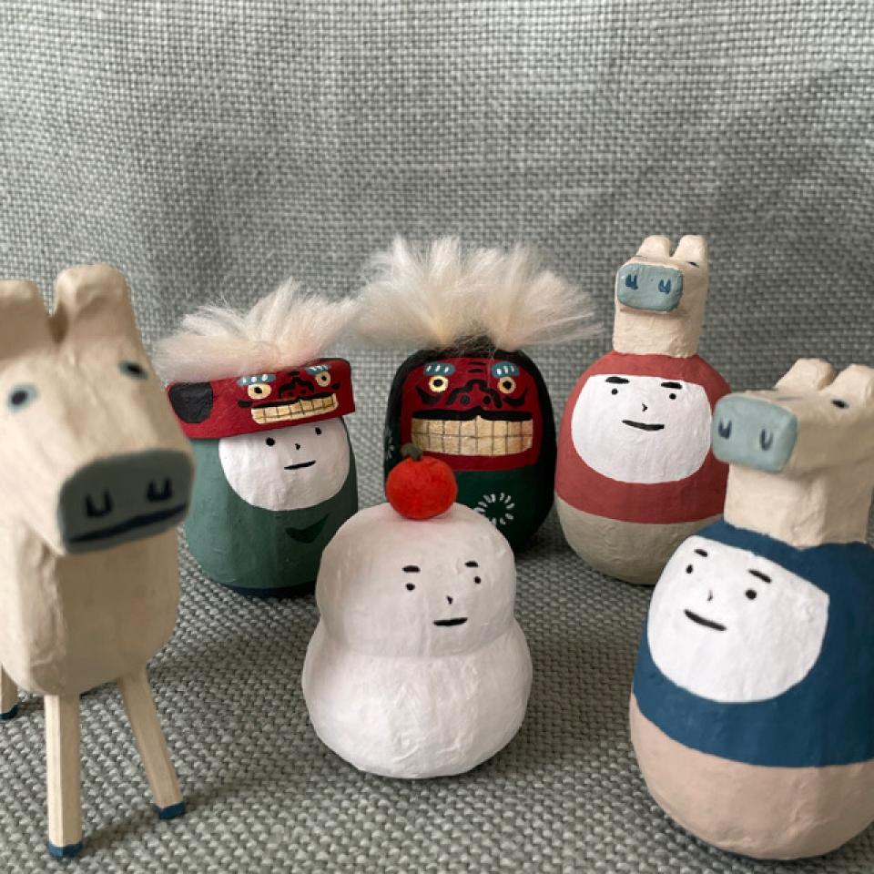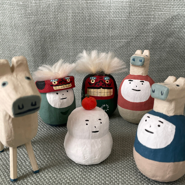 年末恒例「ハリコいわこ」さんがお久しぶりに出展です。「お正月メンバー全員集合」の図。