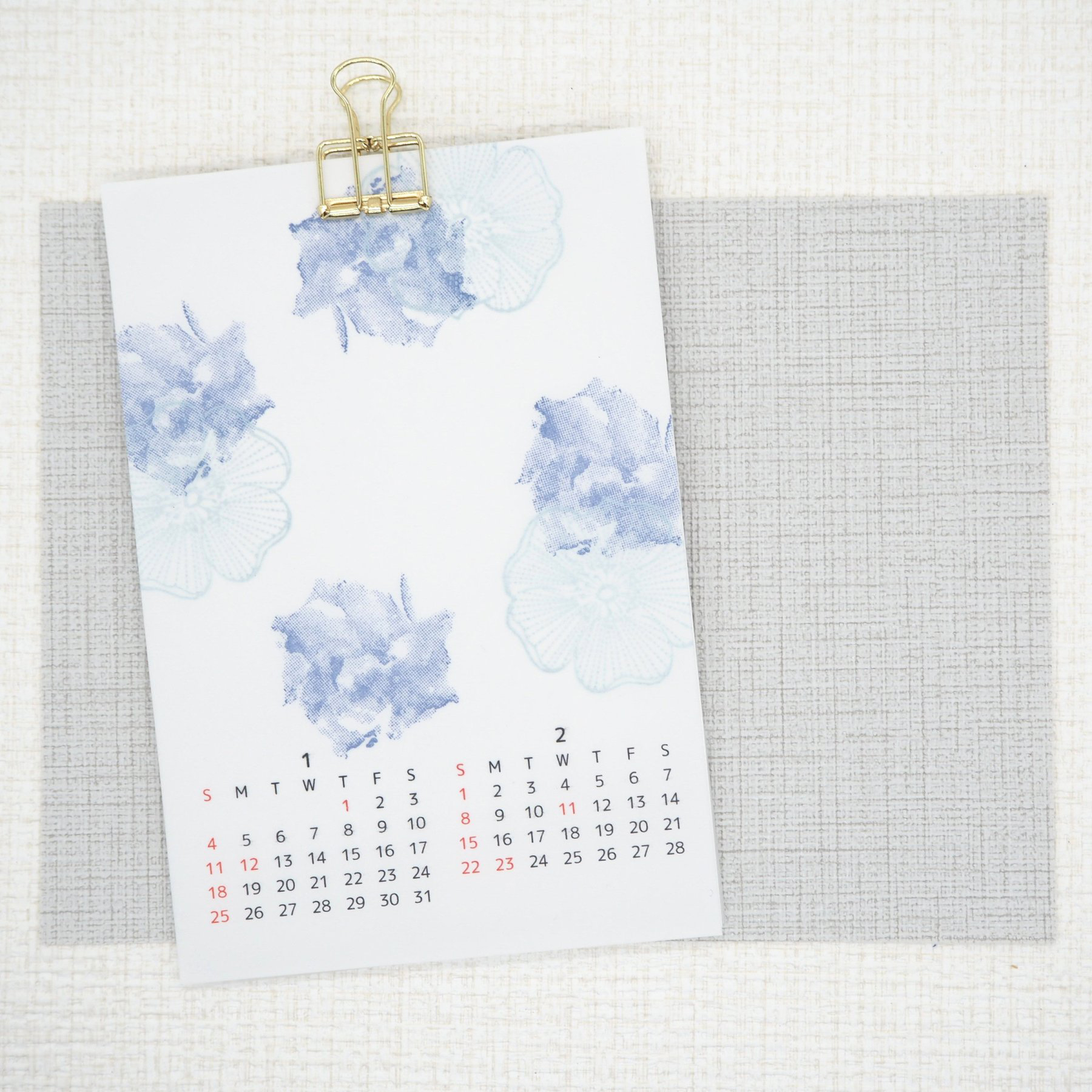 「毎年人気の透けてるカレンダーです。壁掛けタイプとしても卓上タイプとしてもお使いいただけます。先着で年間カレンダープレゼント中です。」