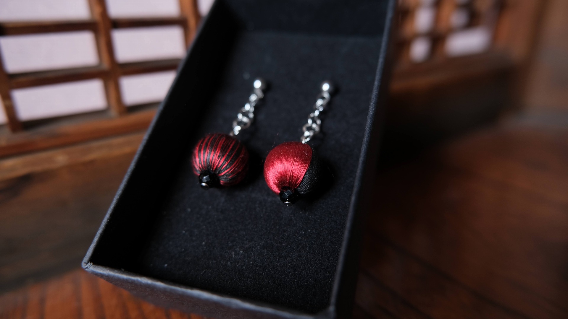 大島紬の糸屋さんが作るこだわりのアクセサリー。「itoya rin」さんのシックな赤黒アクセサリーはこれからの季節にもちょうど良さそうですね。
