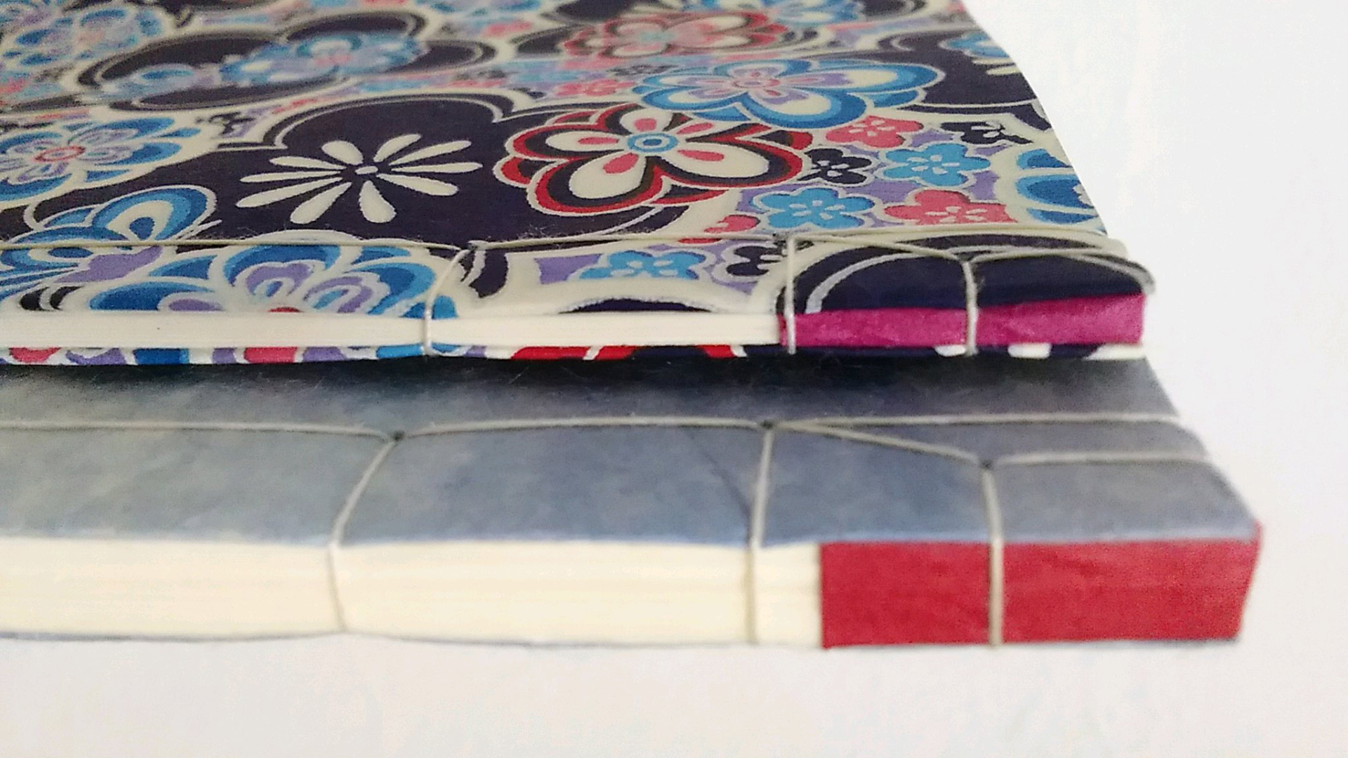 「②薄い方が新作の10枚綴じ。厚い方が定番商品の25枚綴じです。」