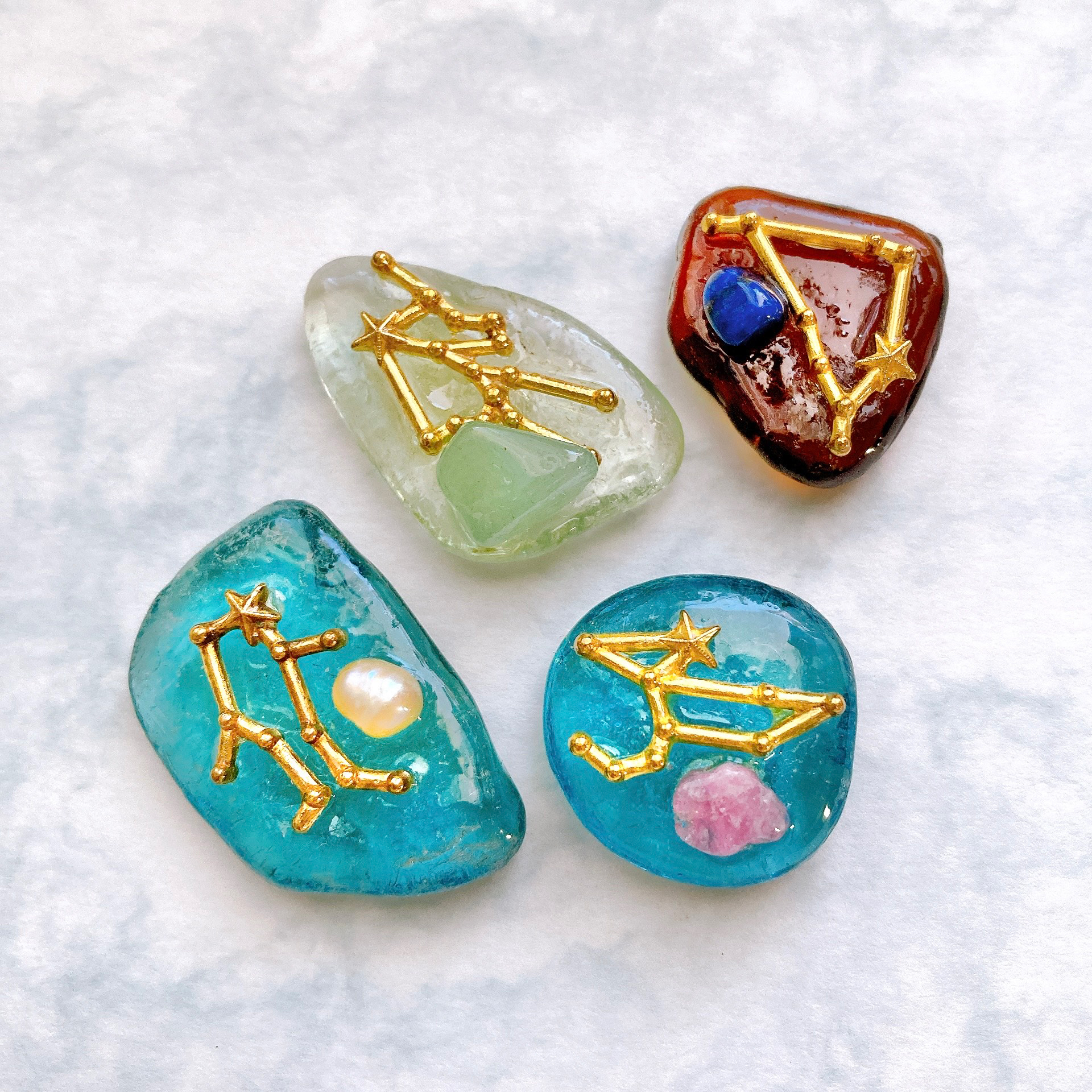 初出展の「おはくのおへや」さん。「①星座・海・天然石の 3つの神秘が織りなす新しい物語『星海石』あなたにまつわる誕生石と星座、海をそえた 3つの自然がぎゅっとつまった あなただけの特別なお守りアミュレット。」