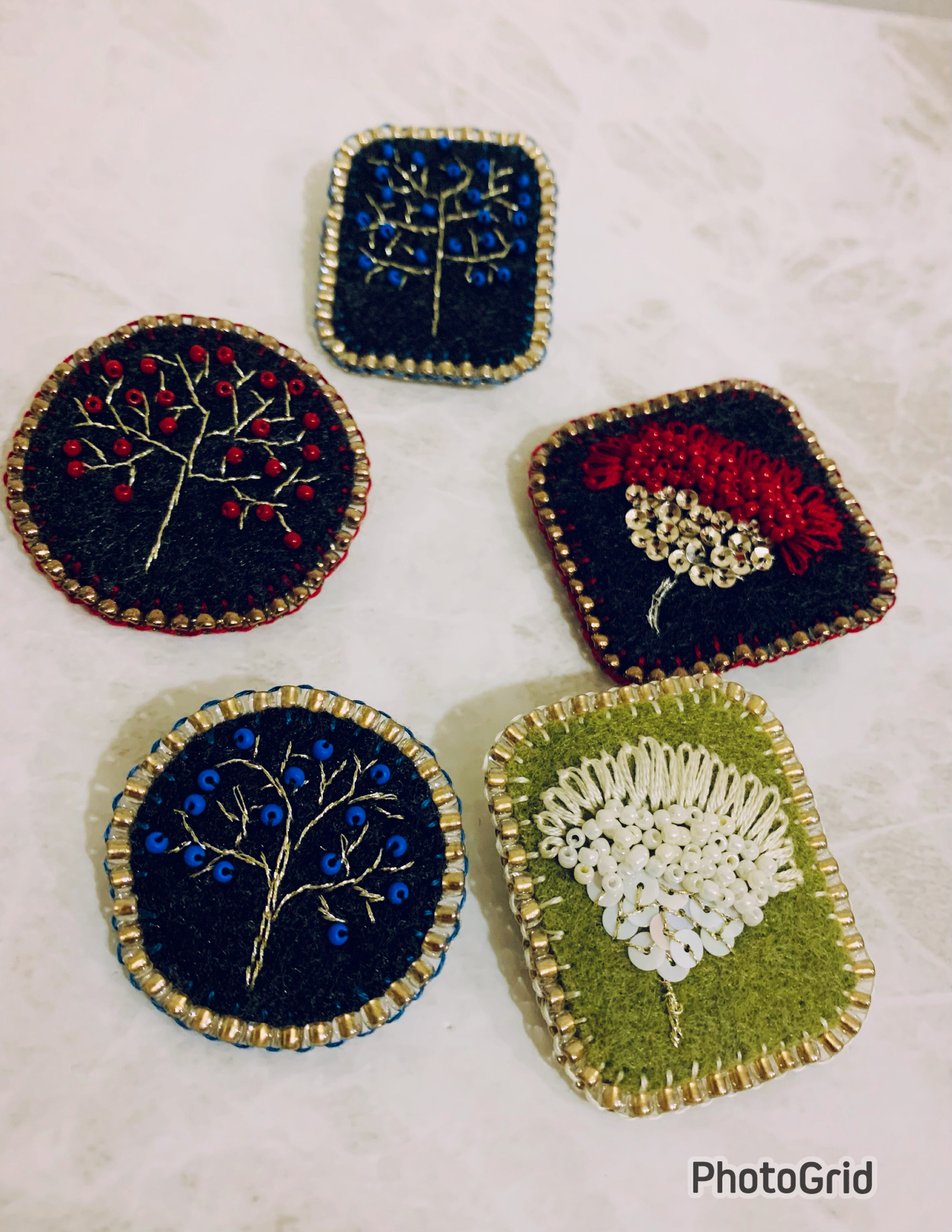 「poco a poco」さんのおすすめブローチ。「使いやすい大きさで、端の周りをビーズで仕上げました。」