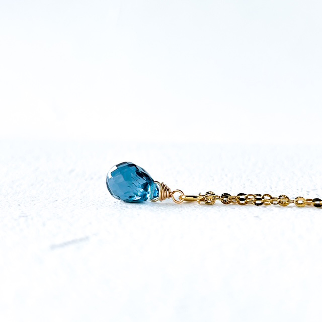 「イシトユメ」さんのアクセサリーは11月の誕生石トパーズが光る。「【ロンドンブルートパーズのネックレス】海の深いところのような色合いにうっとり˚✧₊⁎⁺˳✧༚します。 トパーズは11月の誕生石ですね。」