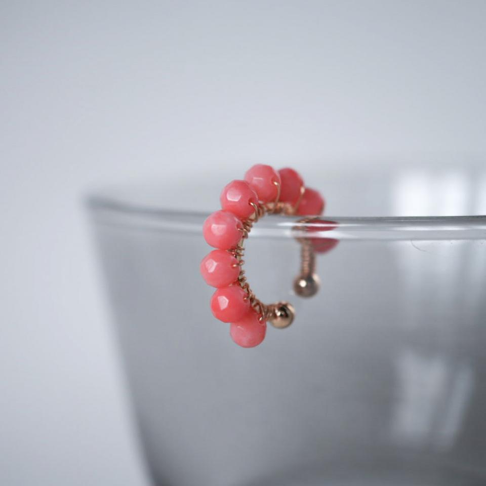 「ピンクオレンジ色が可愛くて可愛いくて…の、コーラル(珊瑚・サンゴ)のイヤーカフ。耳元をちょこんと飾ります。」