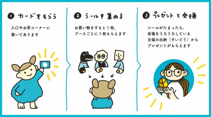 キュートでシュールなイラスト描き「しばたあいり」さんは初出展。オリジナルイラストのシールやポストカードなどが並んでいました。
