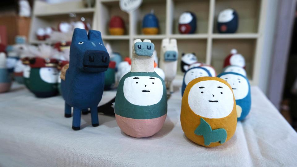 ほぼ毎年この時期に出展いただく「ハリコいわこ」さんの張り子たち。来年の干支は午です。