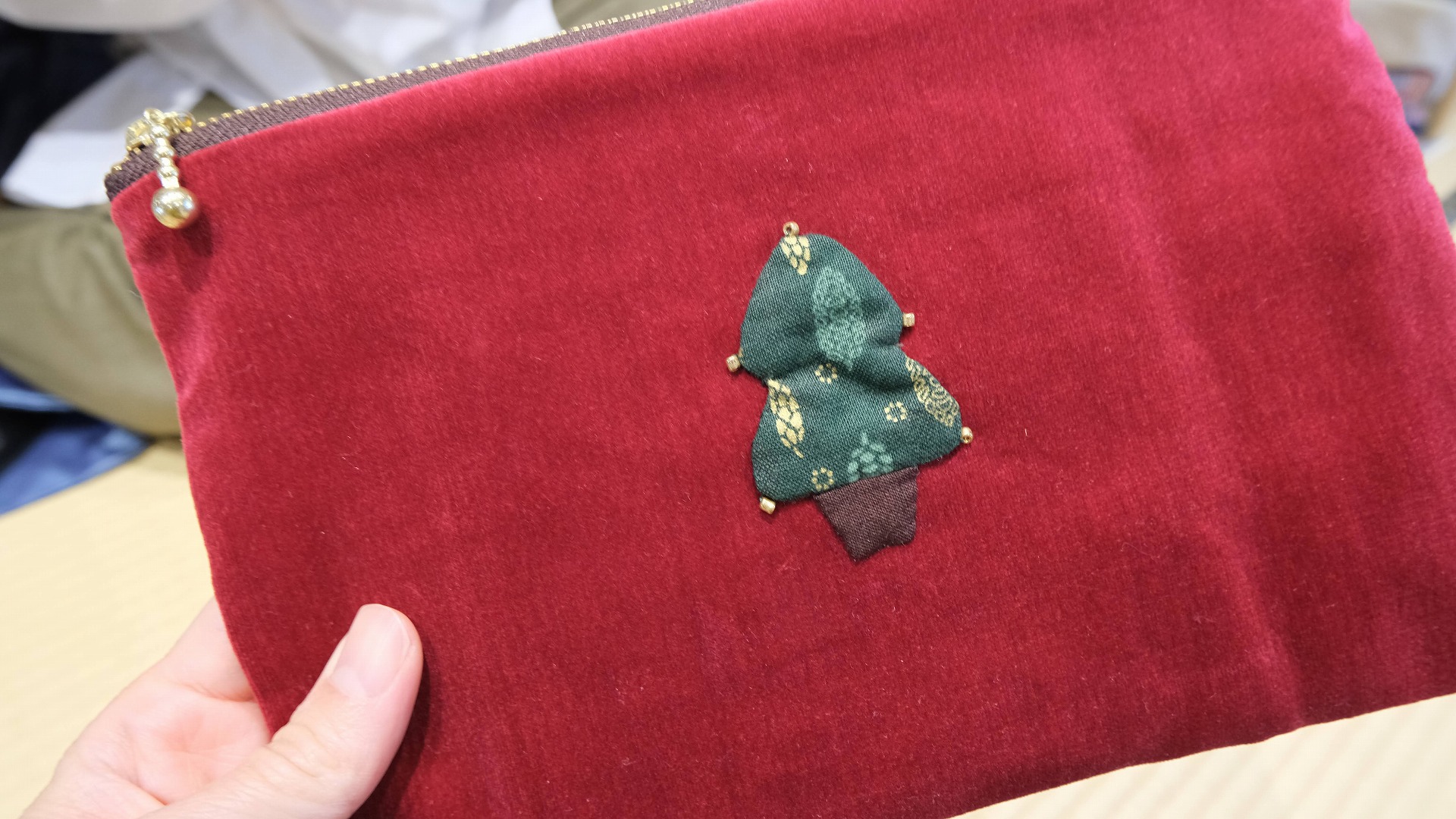 モチーフのところを作るのが大変だったそうです。「my small pocket .jp」さんのクリスマスレッドなポーチ。