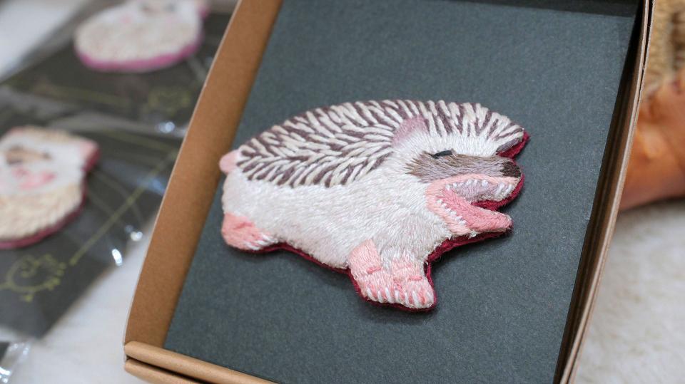 初出展の「humuhumu」さん。動物やお花など自然のモチーフを刺繍し、付け心地も良いアクセサリーに仕立てています。