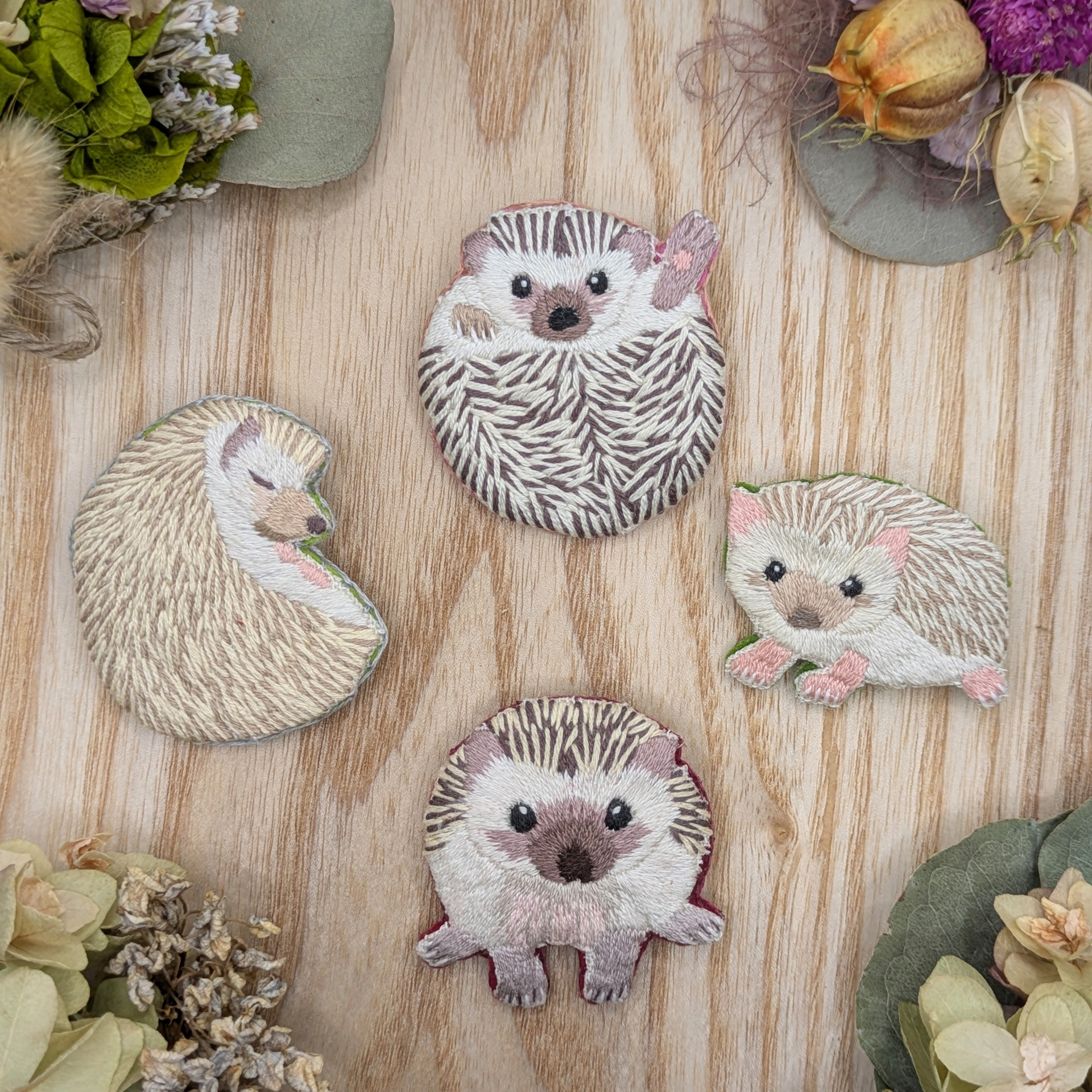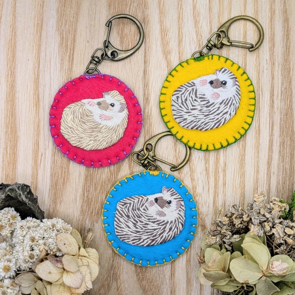 初出展の「neocanal」さん。「ハリネズミ🦔が大好きでリアルめのハリネズミの刺繍をしています。幸運を運ぶと言われているハリネズミの可愛さで皆さんに笑顔を届けたいです。」
