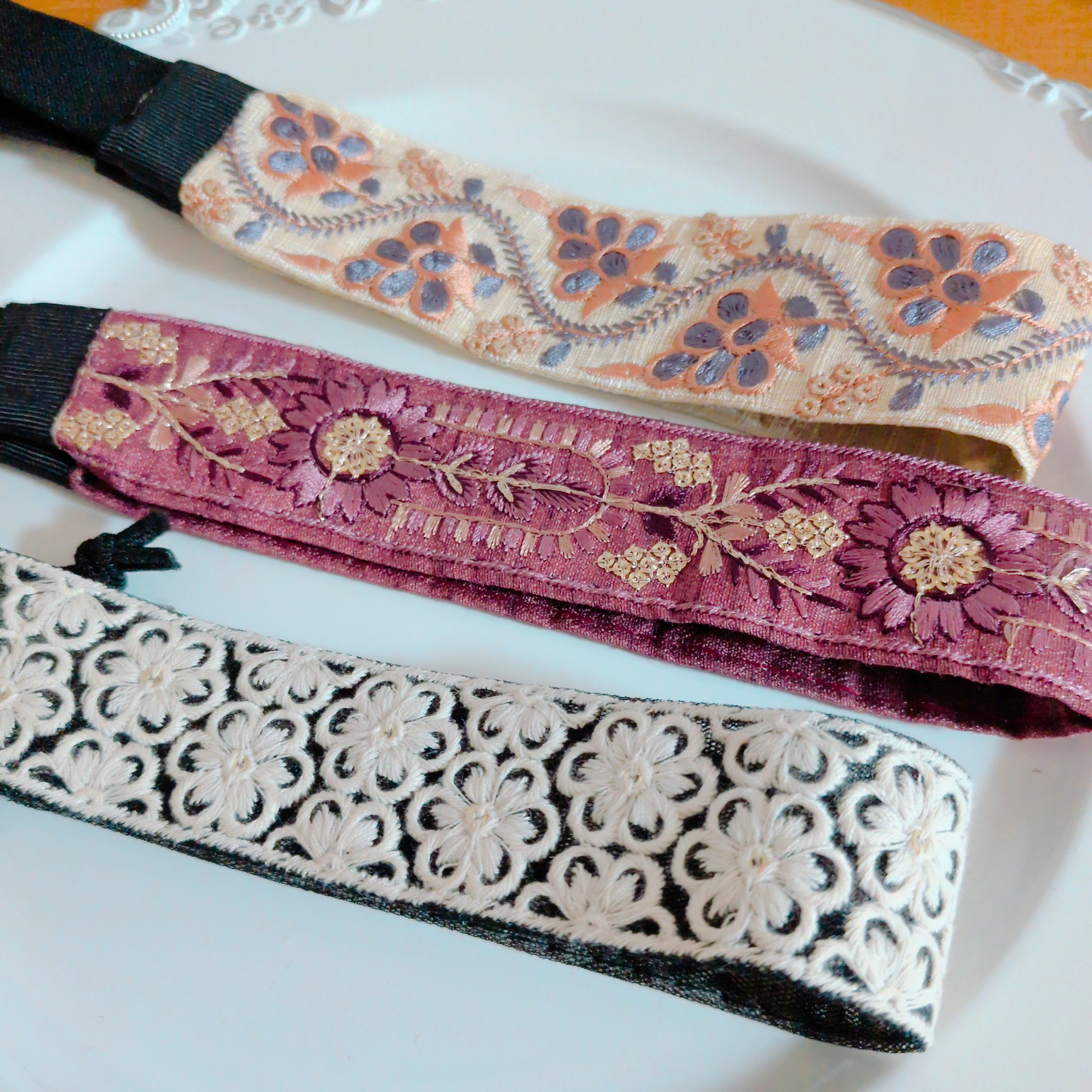 「y-holic」さんの新作はヘアアイテム。「刺繍リボンのヘアバンド制作しました」
