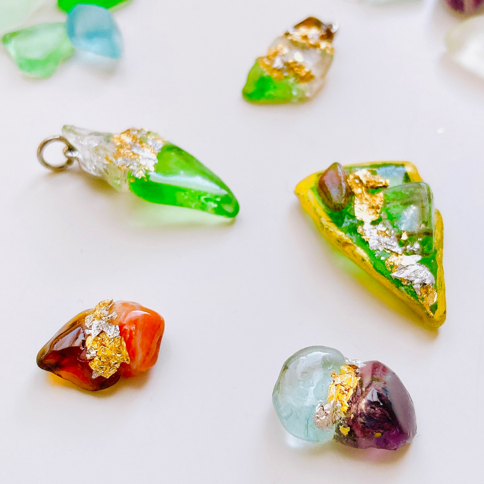 「2026年の新作。海玻璃シーグラスジュエリーに天然石とのコラボジュエリー登場。金継ぎ風に紡いだ地球のカケラ同士の宝石の結晶ジュエリー。」