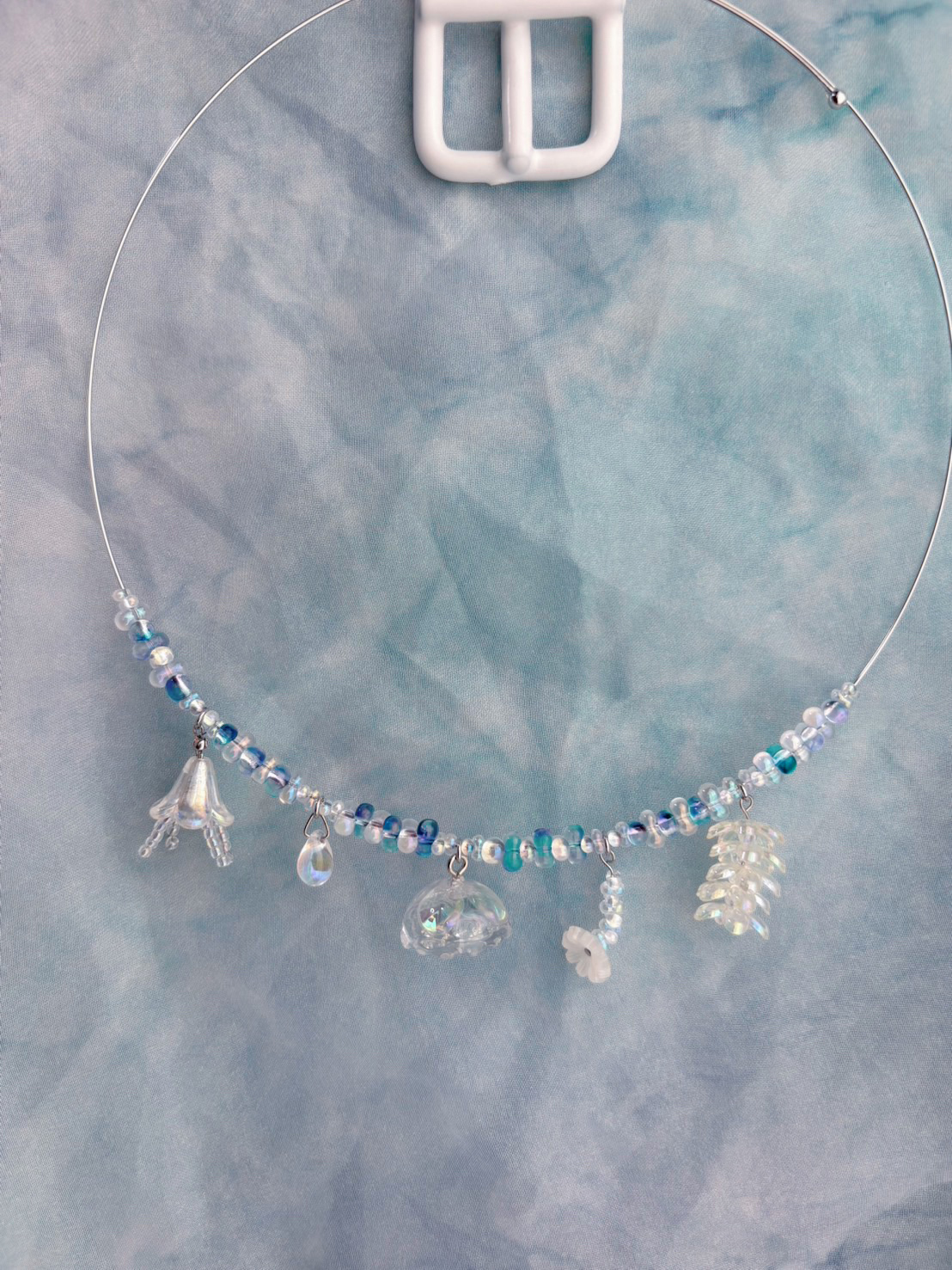 「新作の「くらげの一生ネックレス 輪廻」です。生まれてからくらげになるまでの過程をモチーフにし、ネックレスで表現しました。くらげ愛いっぱいで制作しました!!ぜひご覧ください。」