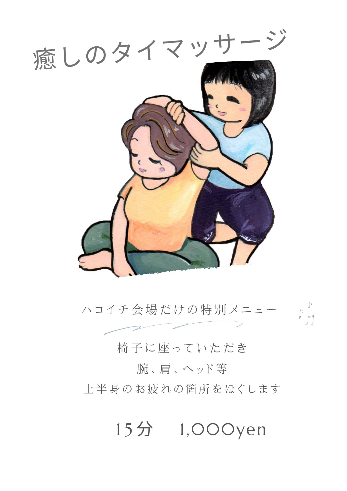 ハコイチ会場だけの特別メニューなタイマッサージもありますよ!