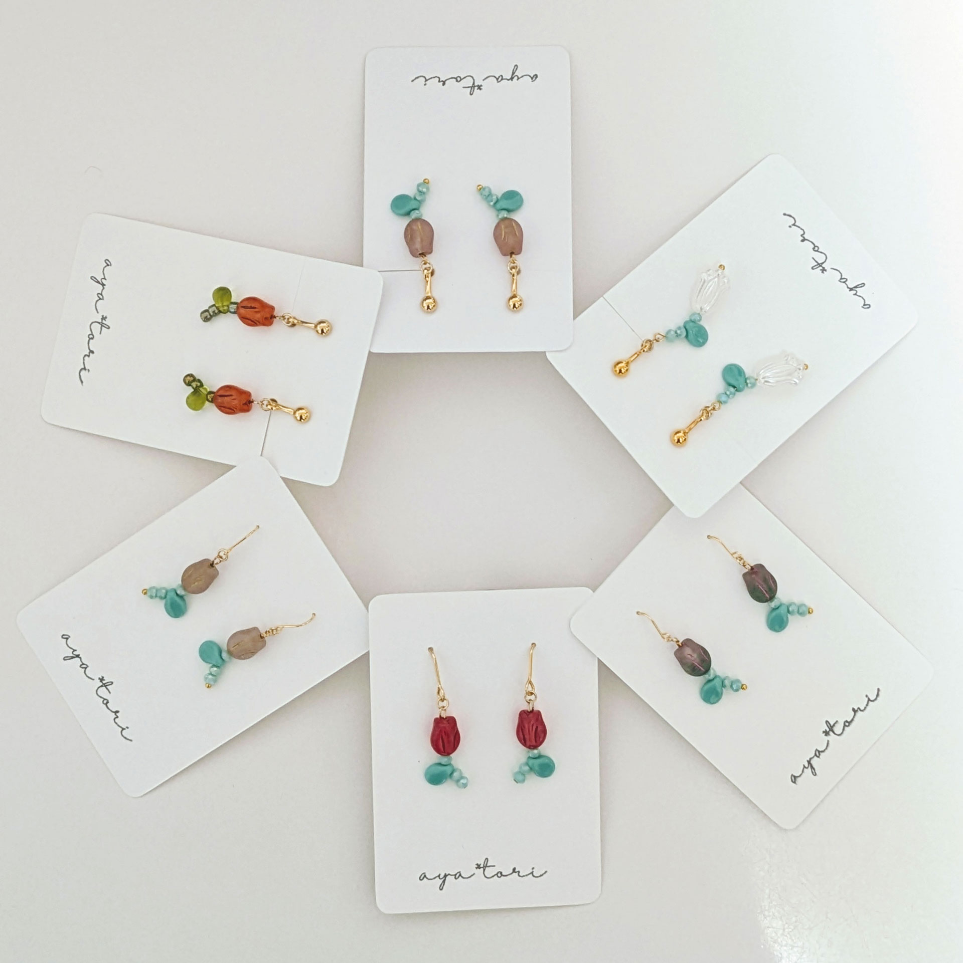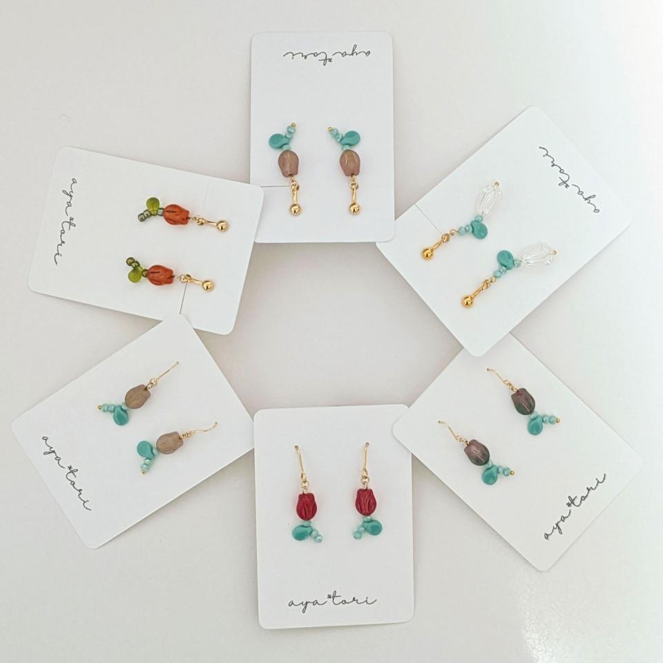 「aya*tori」さんの春らしいかわいい新作をご紹介しますね。「今回は、春に向けてチューリップを作っていたのですが、作るのが楽しくなってどんどん増えてしまいました。小さくて使いやすいサイズになっています。文鳥と野鳥寄りの小鳥グッズもお持ちしますので、よろしくお願いいたします。」