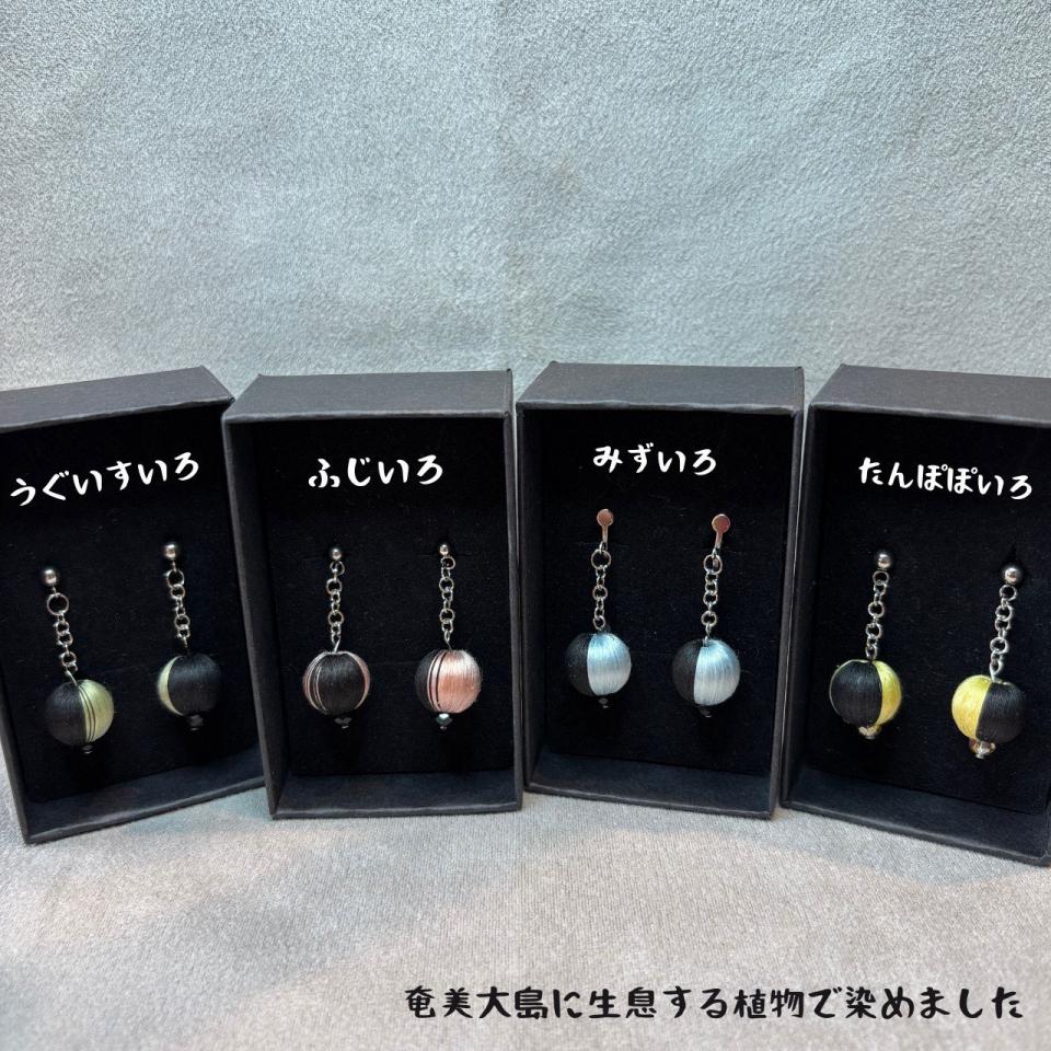 「itoya rin」さんの糸から生まれるアクセサリー。奄美大島に生息する植物で染めた糸×泥染の新色がたくさん登場です。