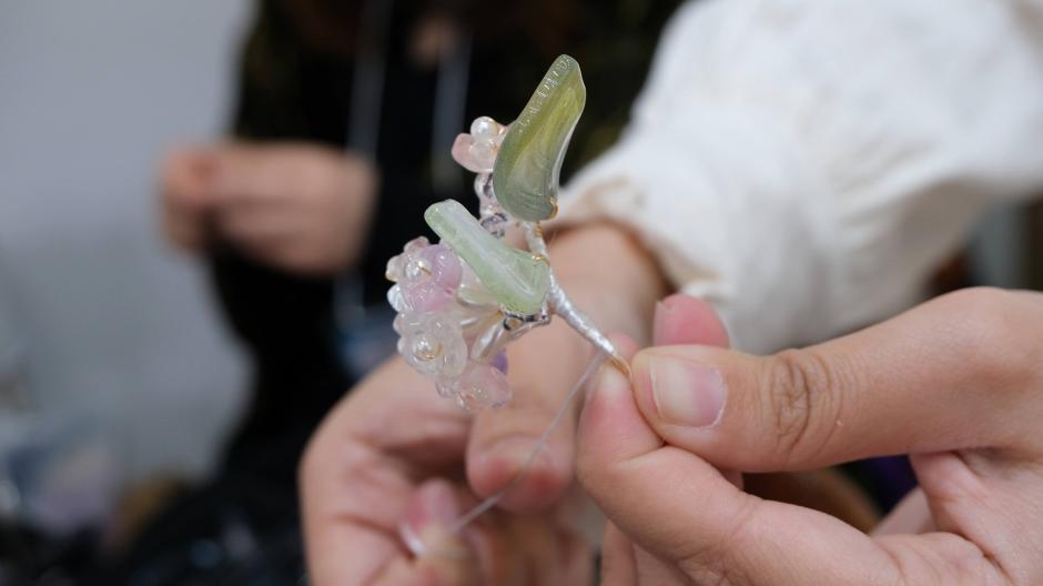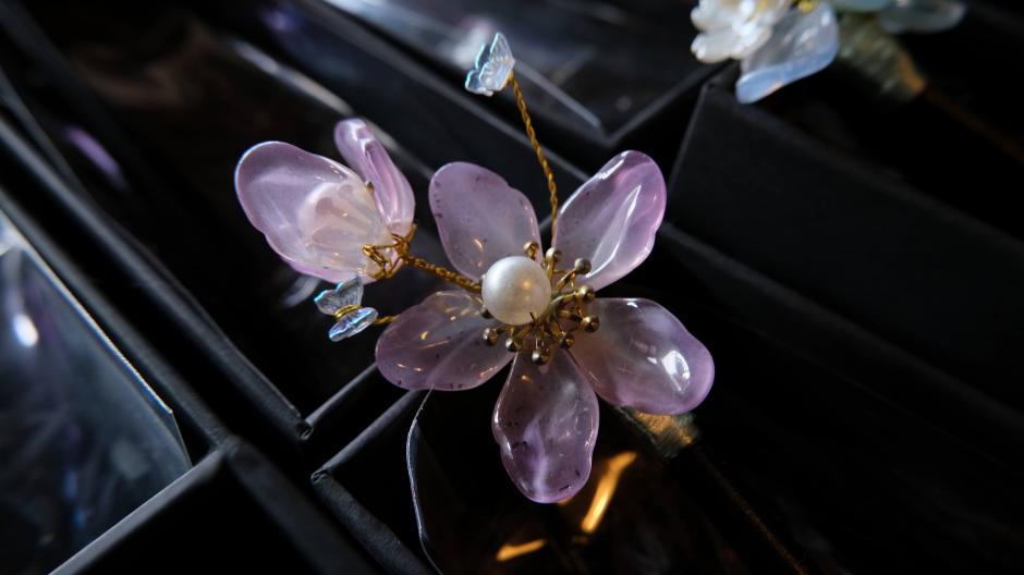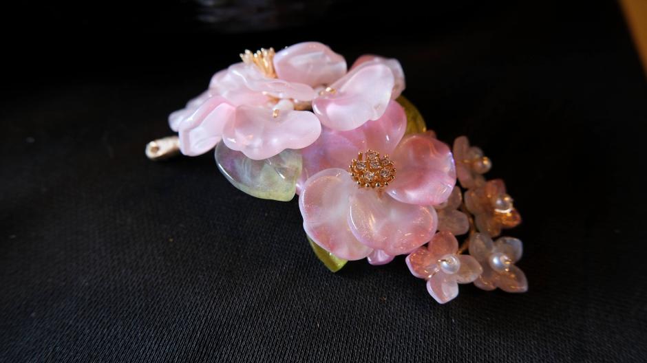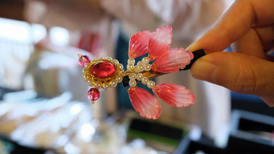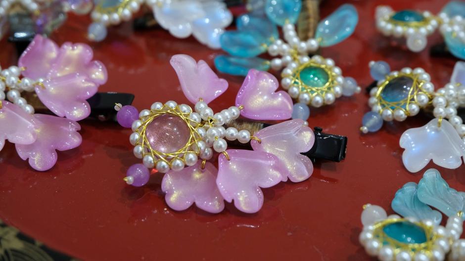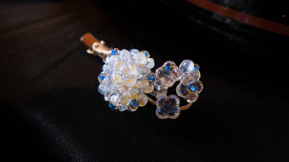 瑠璃や樹脂で作られた花の形をしたヘアアクセサリー