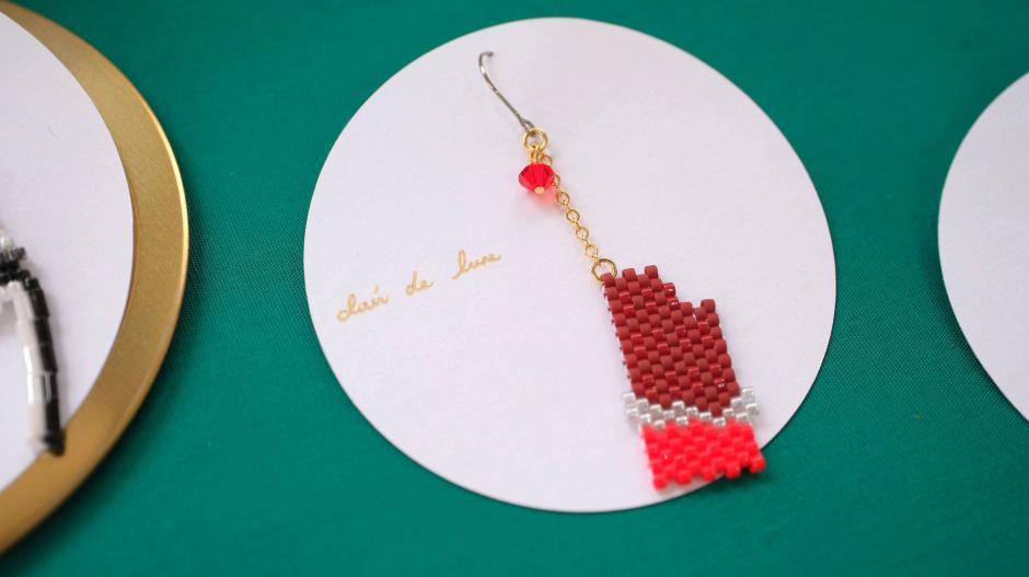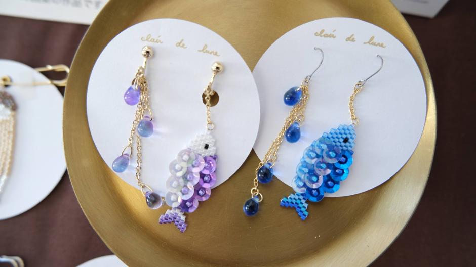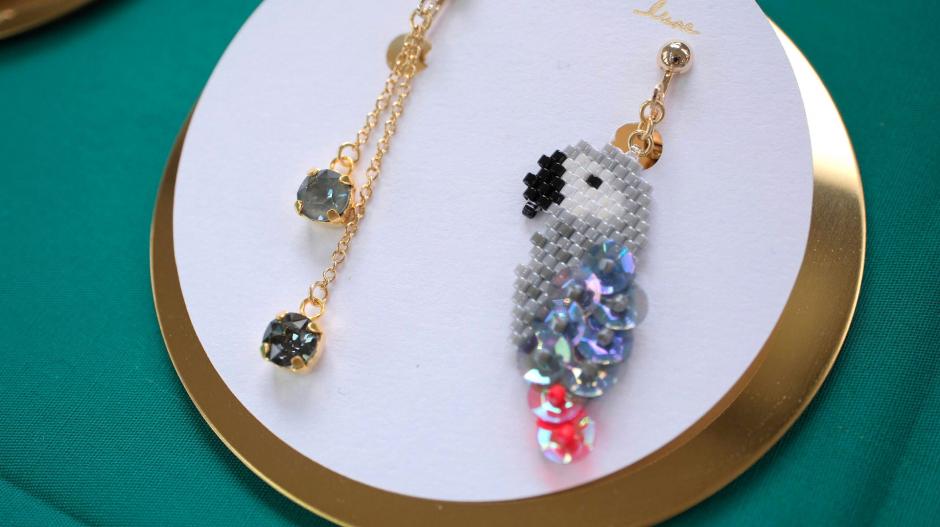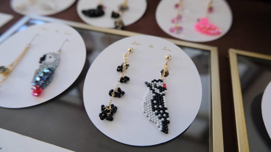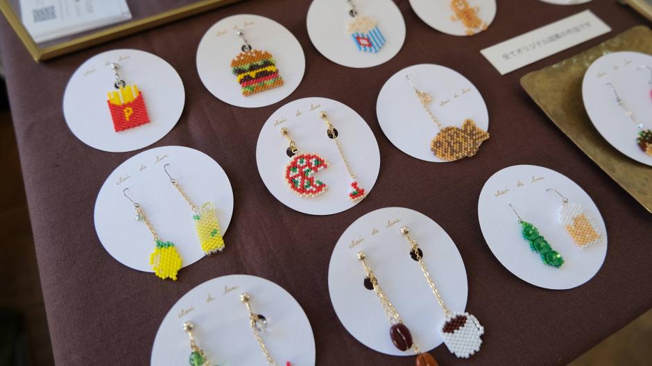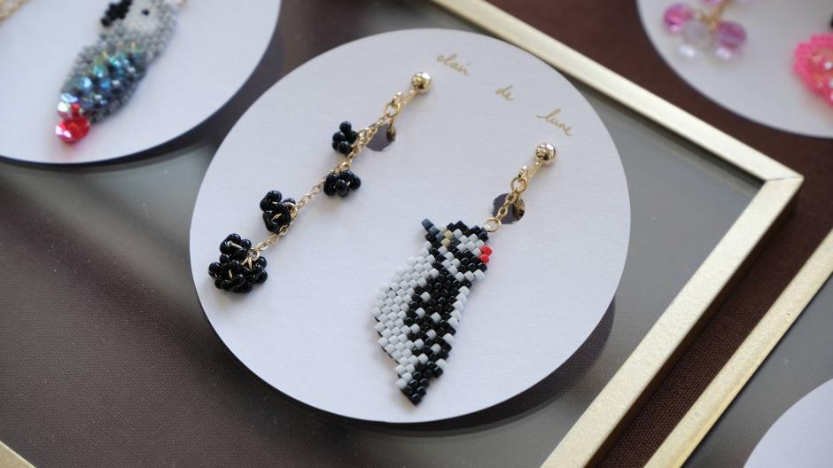 鳥さんシリーズ、ネイティブ柄シリーズ、食べ物シリーズなど、様々なモチーフをビーズ編みで作っちゃった「clair de lune」さん。独自のアイデアで生み出されるビーズステッチの作品にはファンも多いです。シリーズが違ってもテイストは同じなので、左右で違う作品を組み合わせてつけられるのもおしゃれの楽しみが広がっていいですね。