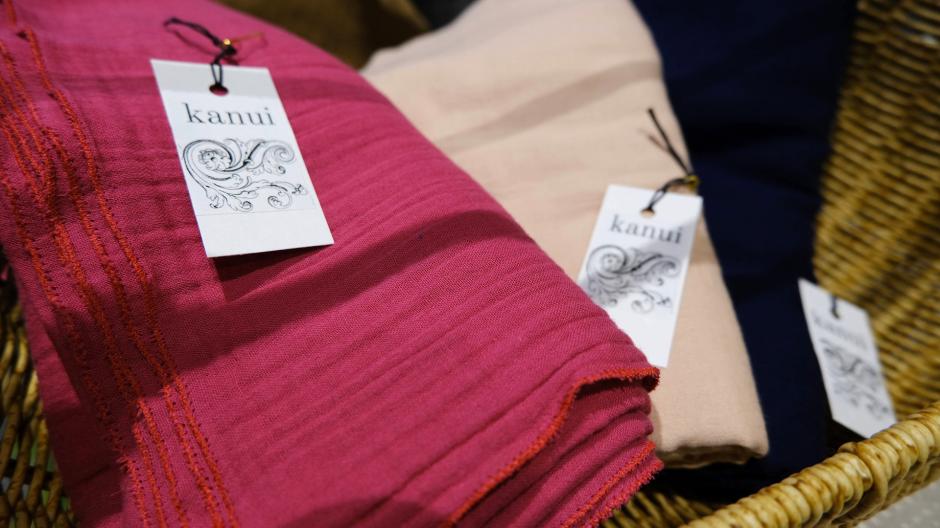 肌あたりにこだわって選び抜かれた「 kanui」さんの生地。ほおずりしたくなっちゃうストールや、何度手を拭いてもふかふかで給水してくれるガーゼハンカチなど。ファンは複数枚持ちが普通です。リネンとコットン、冬はウールもあるよ。布ものならお任せ。