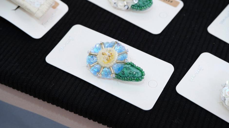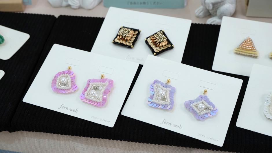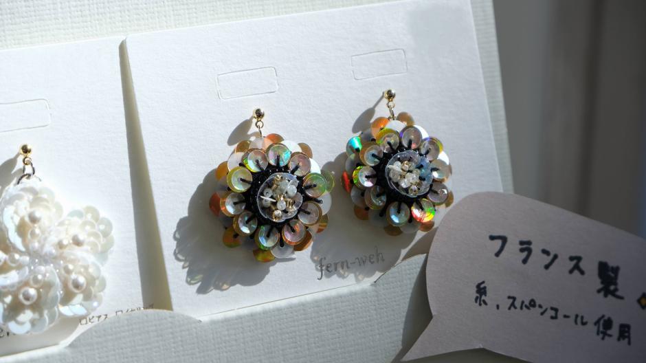 ビーズとスパンコールを刺繍したアクセサリーを出品しています