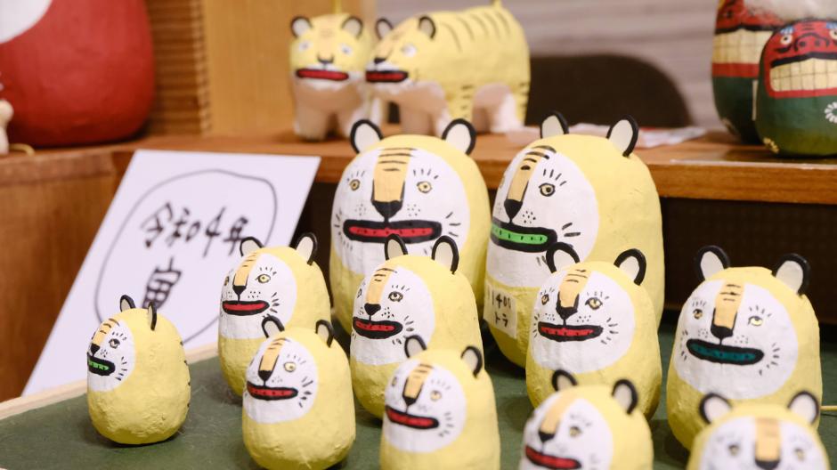 年末近づくハコイチに登場する「ハリコいわこ」さん。キュートな張り子の起き上がりこぼしは、干支や獅子舞など季節ものそろってます。