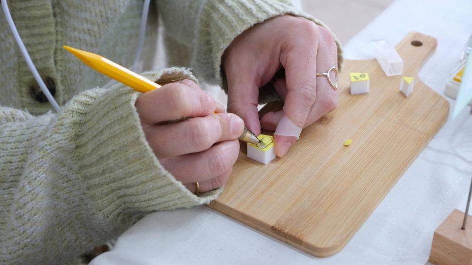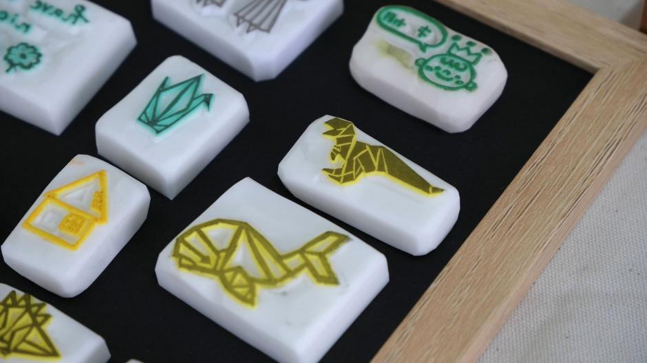 消しゴムはんこを彫っています。シール、布、付箋などなどお好きなところに押してください。お客様に楽しく使っていただければ幸せです。