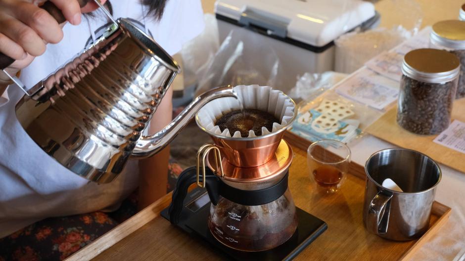六本松のアパートにお店がある「小さな焙煎所花待ち雨珈琲」さん。厳選された豆を、確かな腕で焙煎し、豆のおいしさを最大限に引き出すドリップで煎れられた珈琲をぜひ一度飲んでみてください。珈琲が得意ではない私にも伝わる美味しさがあります。美しいハンドドリップはもはやエンターテイメント!