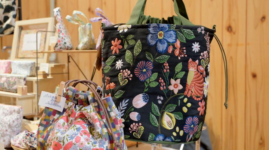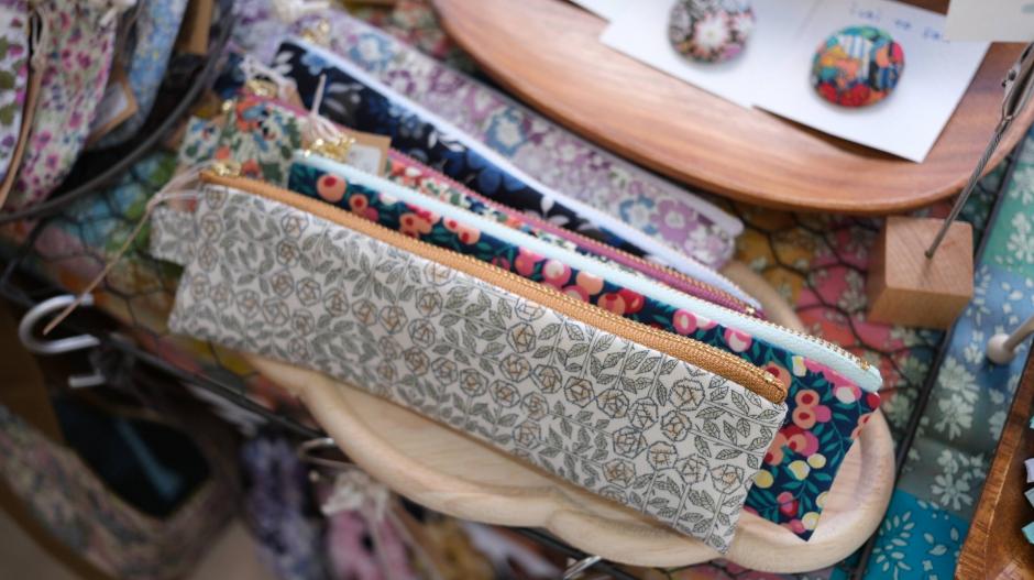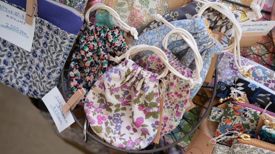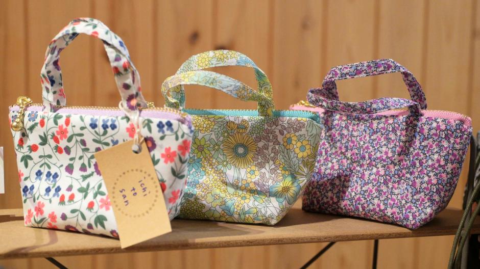 魅力たっぷりのリバティプリントを贅沢に使って、アクセサリーやポーチなど使い勝手の良い作品をたくさん作られている「ichi to san」さんです。
