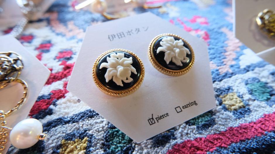 ボタン屋さんである「伊田ボタン」さん。ビンテージのボタンやビーズを使ったアクセサリーには何とも言えない魅力があります。深い色合いと繊細な造形、アンティークのボタンの魅力を感じてください。