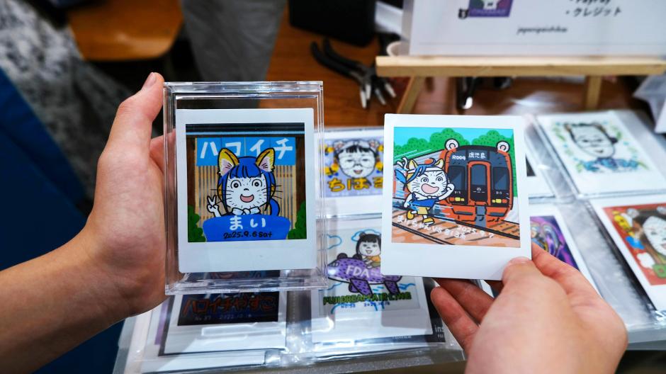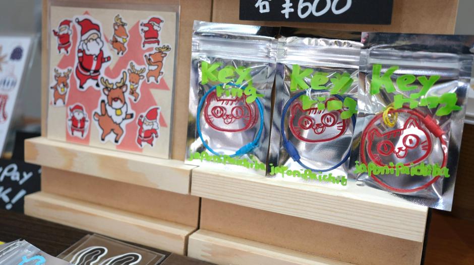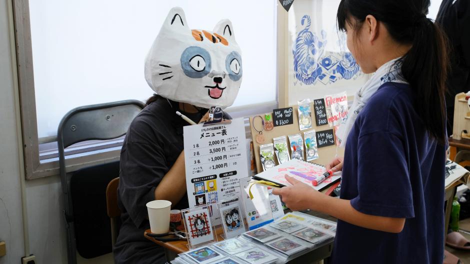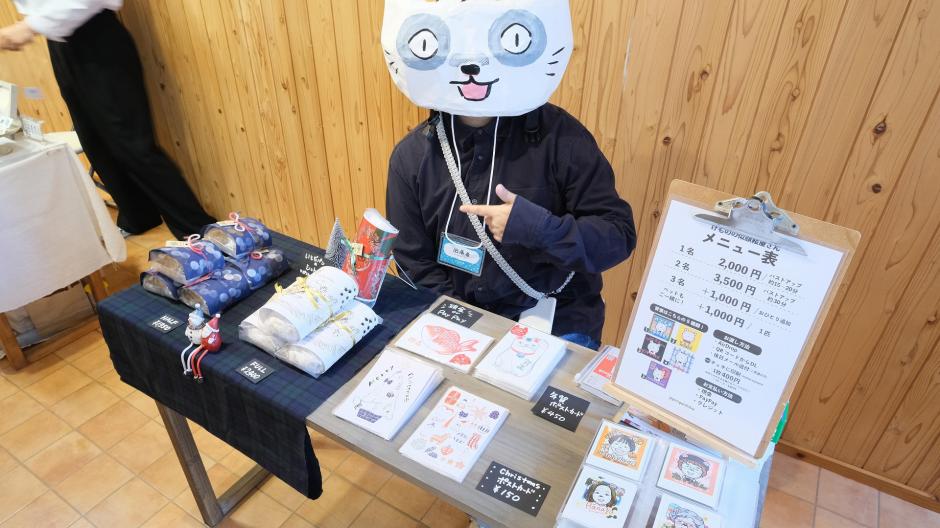 毛むくじゃらになれるクマの似顔絵屋「じゃぽにぱいちば」さんはなぜか猫をかぶっている…。楽しいステッカーも売ってます。