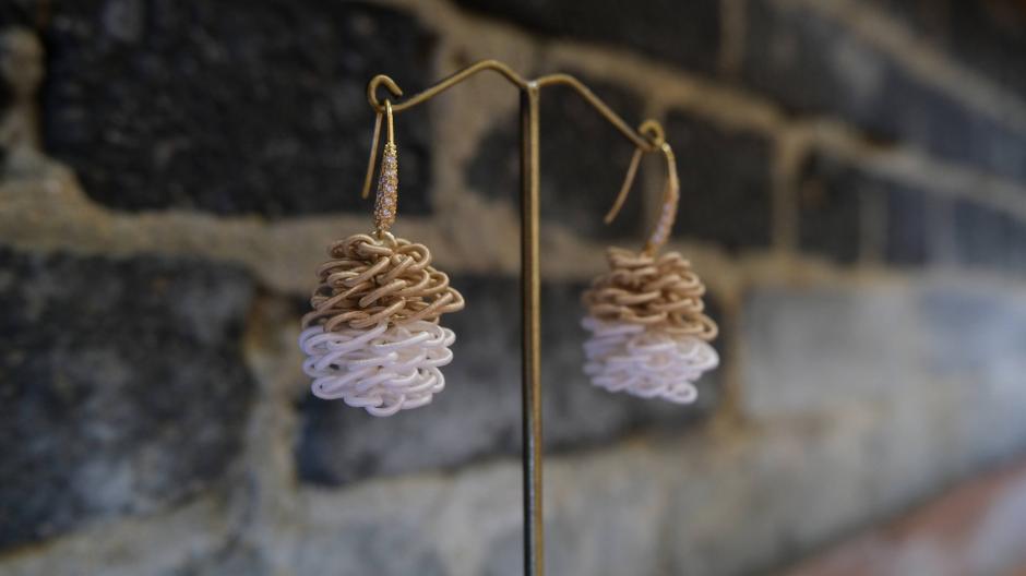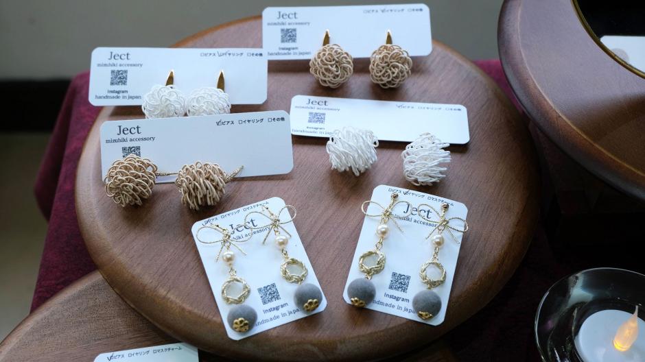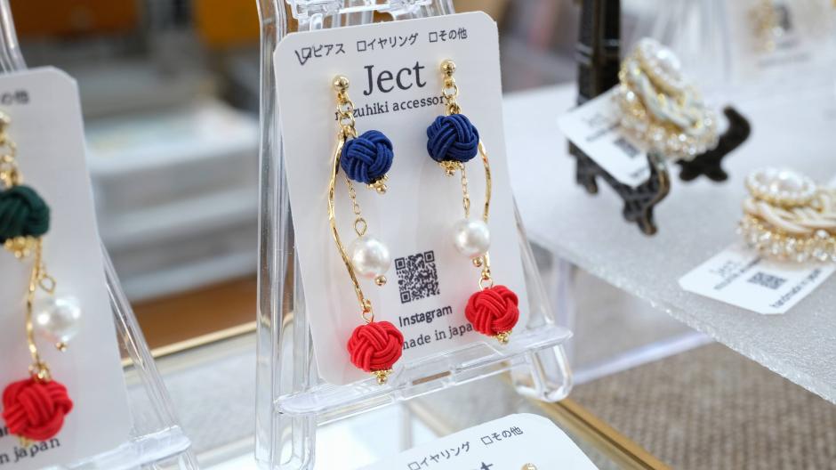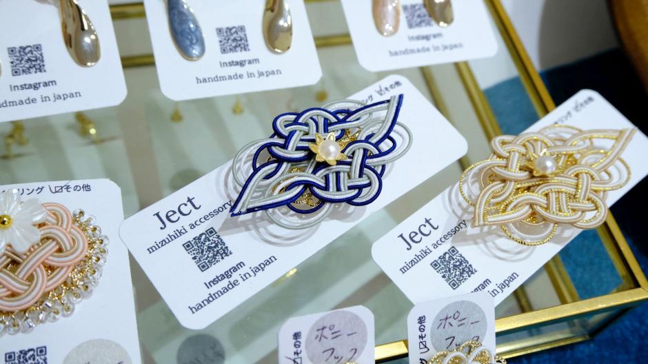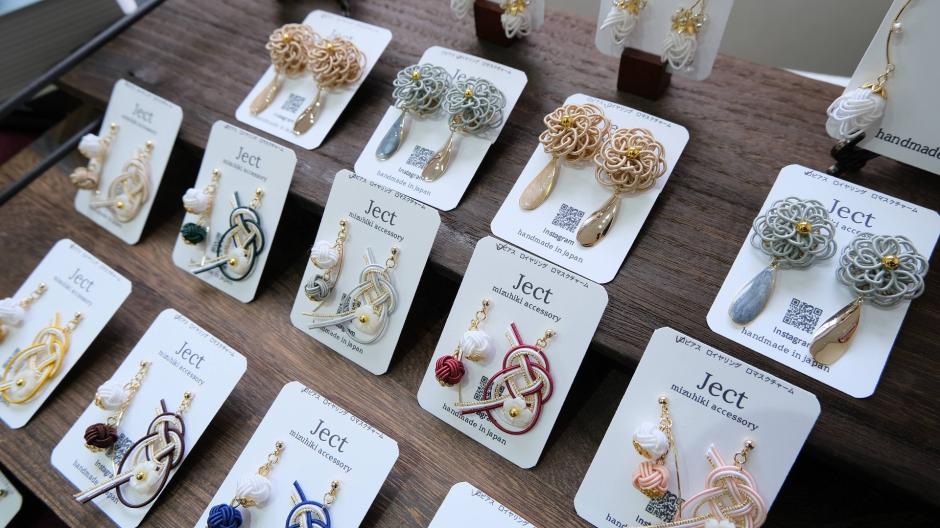 伝統工芸である水引の従来の理にとらわれず、「Ject」さんらしい自由な感性で日常に溶け込ませた水引アクセサリーが並びます。