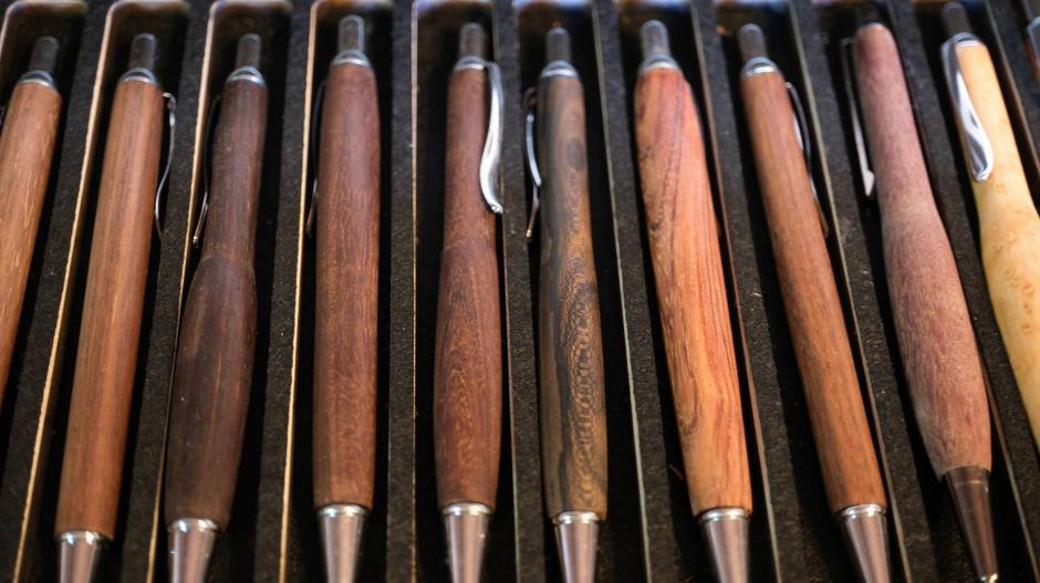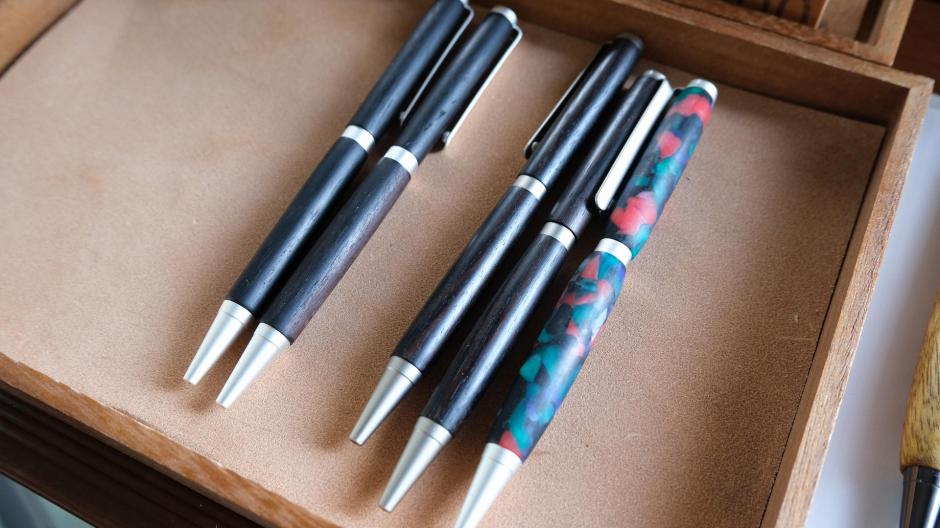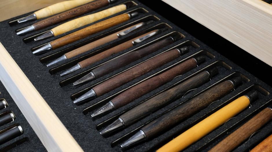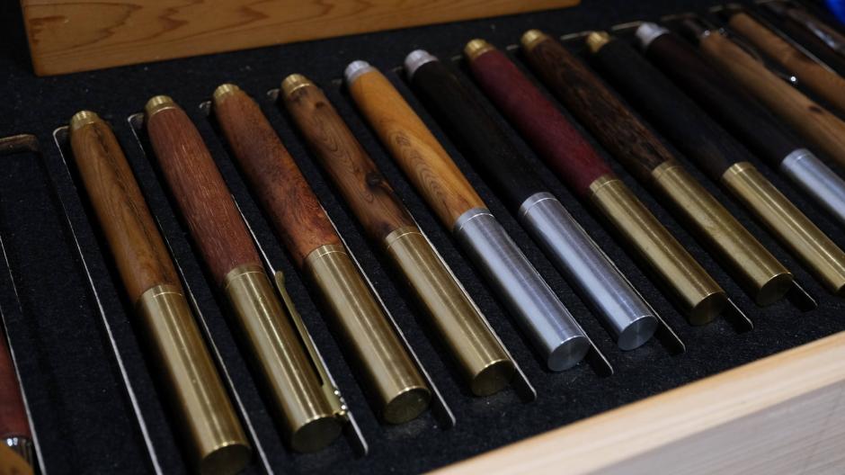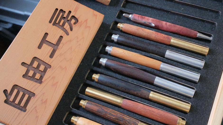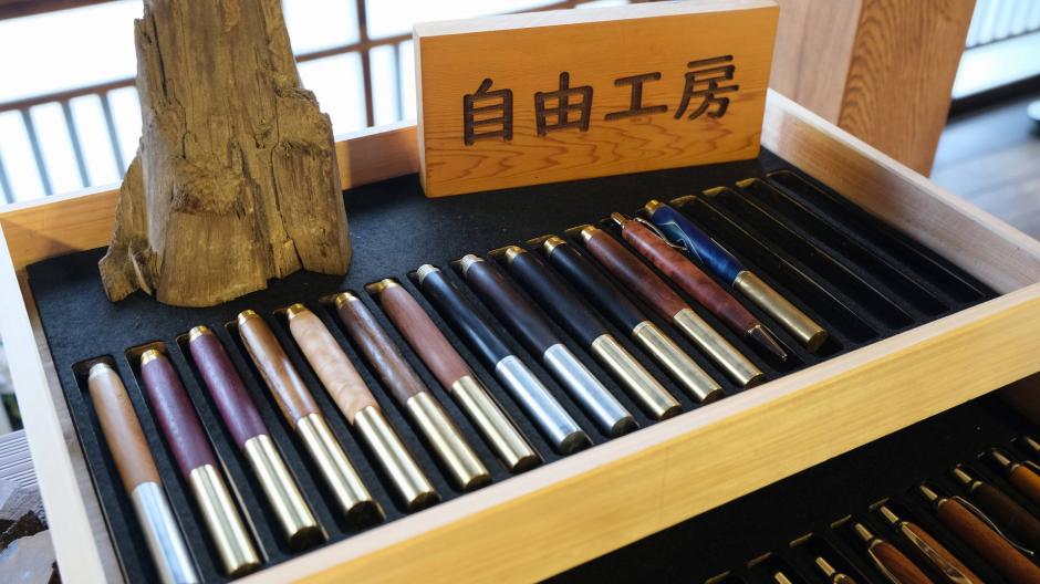 削りだしてオリジナルの木軸で万年筆を作られている「自由工房」さん。木の種類はもちろん、万年筆のデザインで使い心地が違うのでぜひしっくりくる一本を見つけて欲しいです。この書き心地、クセになる。ほかにも粘土を使ってヘアアクセサリーも作らています。