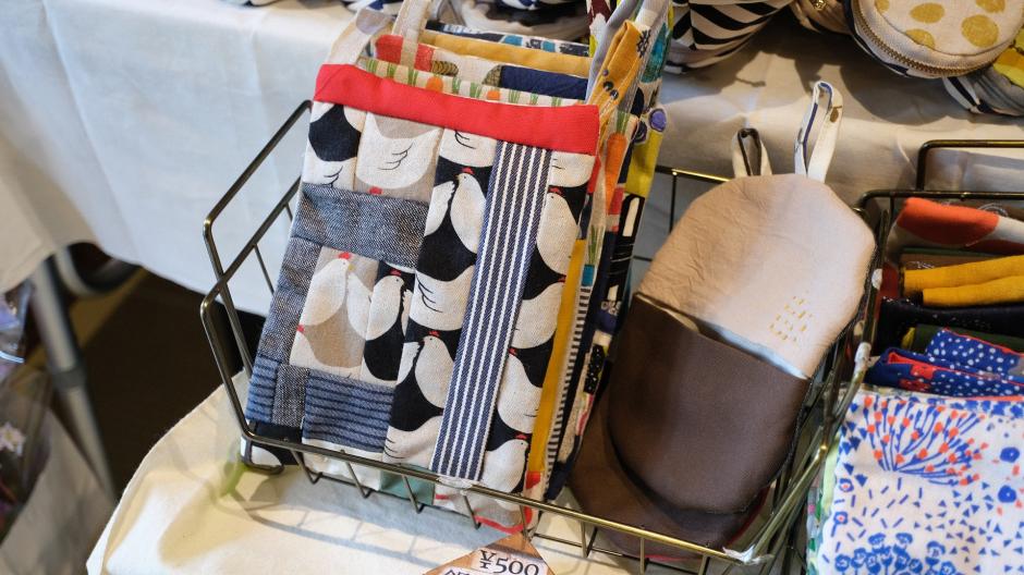 ハコイチ作家さんの足元はだいたい「かなえる屋」さんのルームシューズです。改良を重ねて、安心の履き心地。季節を問わず活躍してくれる布アイテムが並びます。かなえる屋さんならではの布選び、布使いにファンも多し。