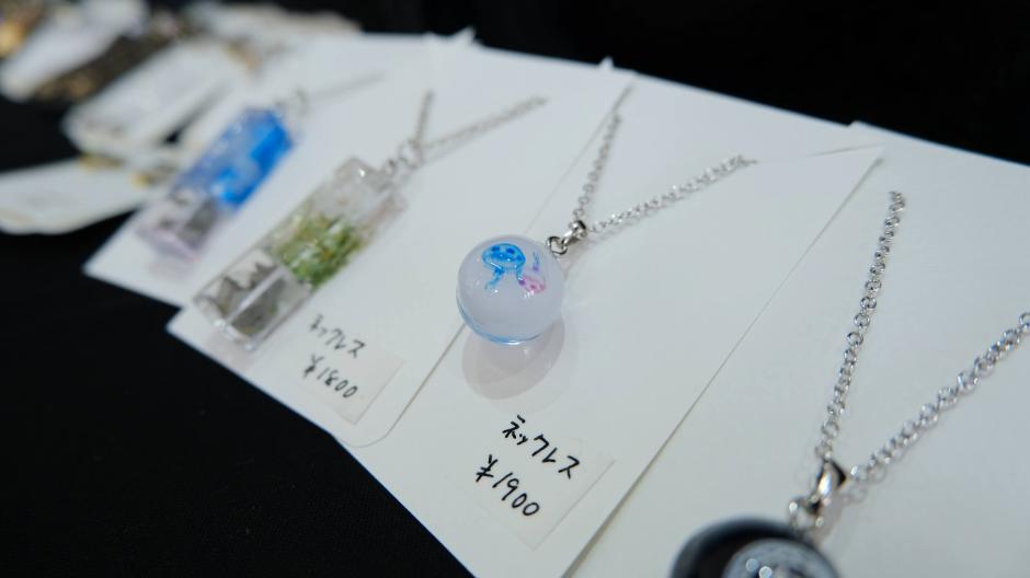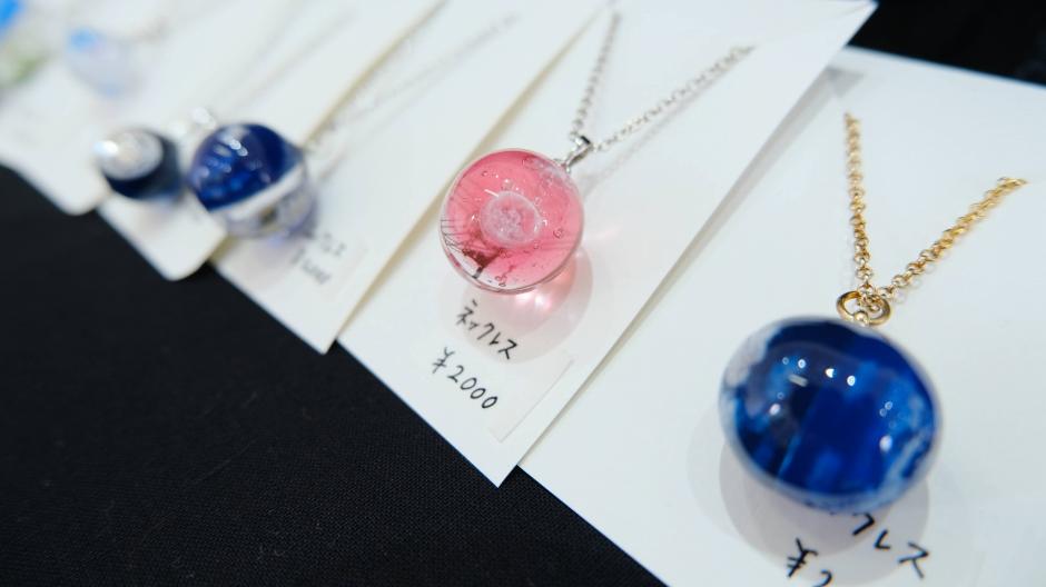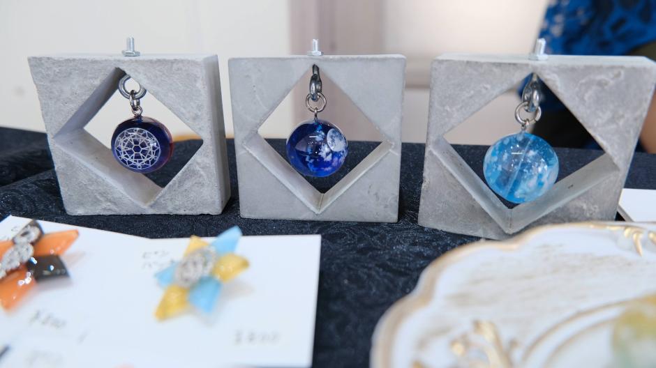 空やクラゲなどをレジンの中に閉じ込めたものや、小さく緻密な歯車を様々組み合わせたアクセサリーなど、好きがたくさん詰まったアクセサリーを作られている「架音」さんです。
