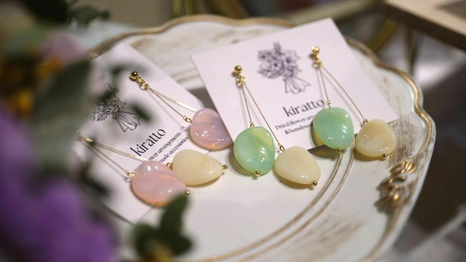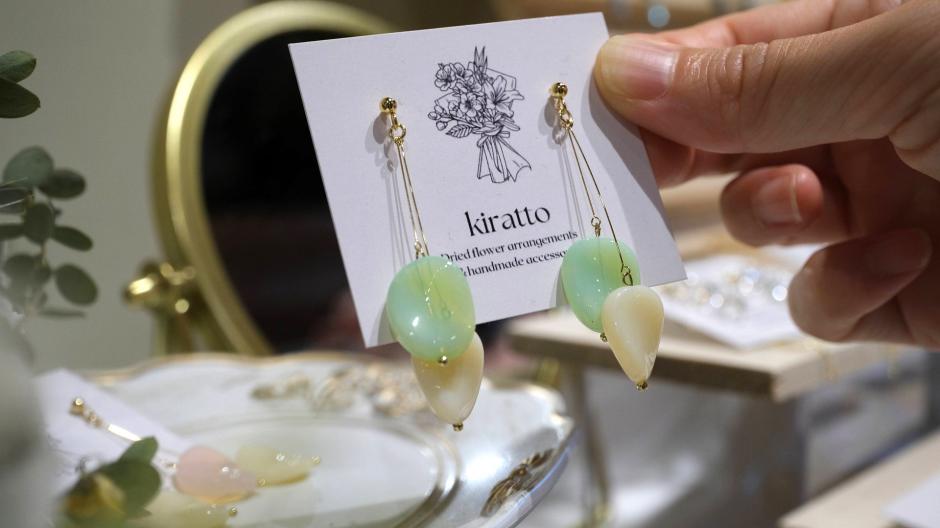 華やかなリースやスワッグなど花小物はお部屋に飾るもよし、贈り物にもよしです。小さな花束のようなアクセサリーも魅力的な「kiratto」さんです。