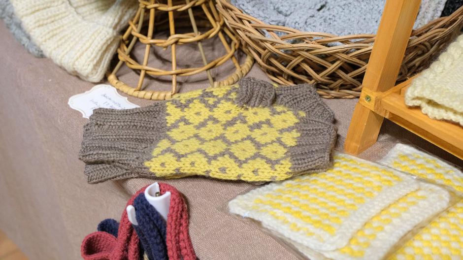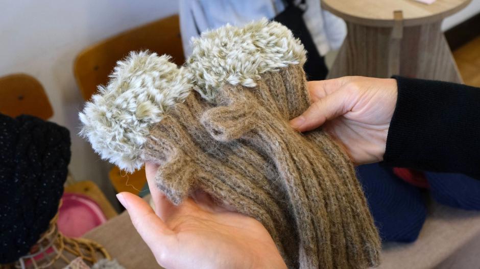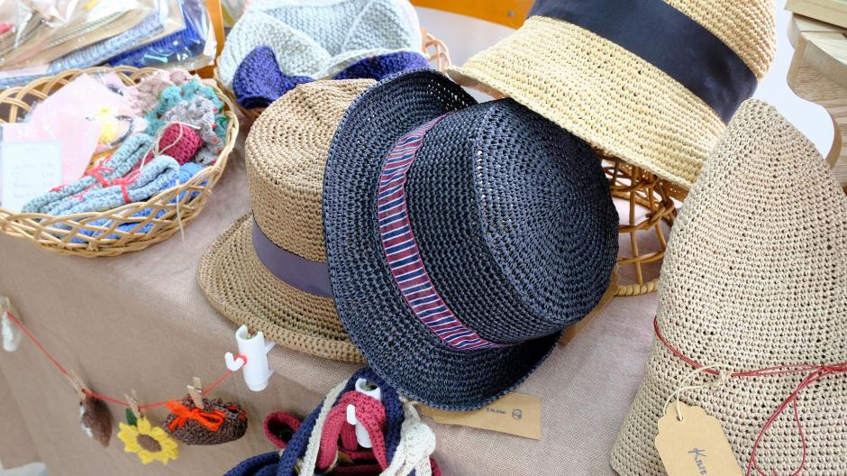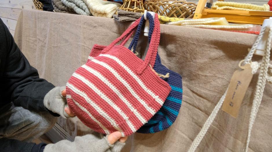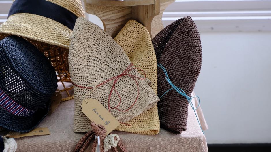 「Knit snow」さんのニットのベレーはやわらかくて気持ちがいいです。傘の迷子防止カバーや、ヘアアクセサリーなど、ちいさなニット小物も人気です。