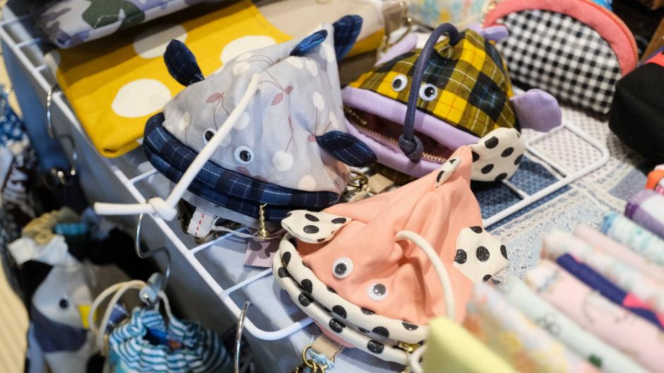 アイデア布小物に、生き物モチーフのおもしろポーチなど、生活を豊かにしてくれる作品がそろう「Lui&Lei」さんのブースです。
