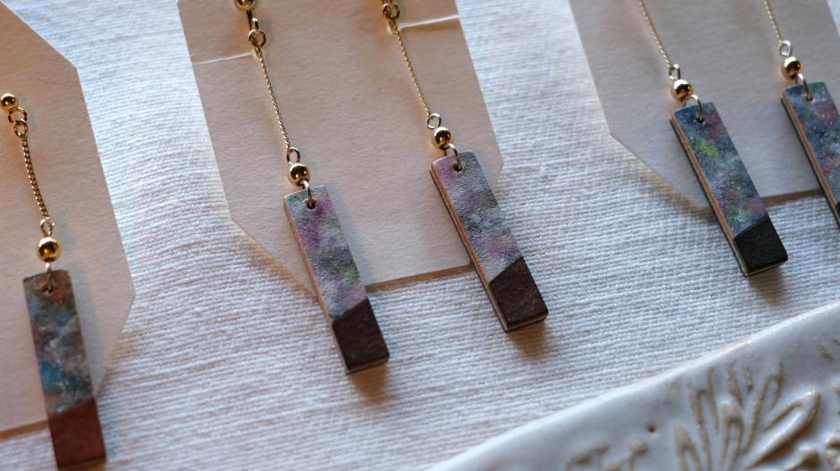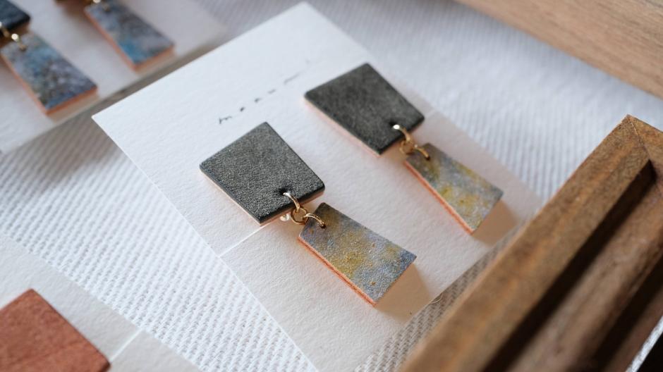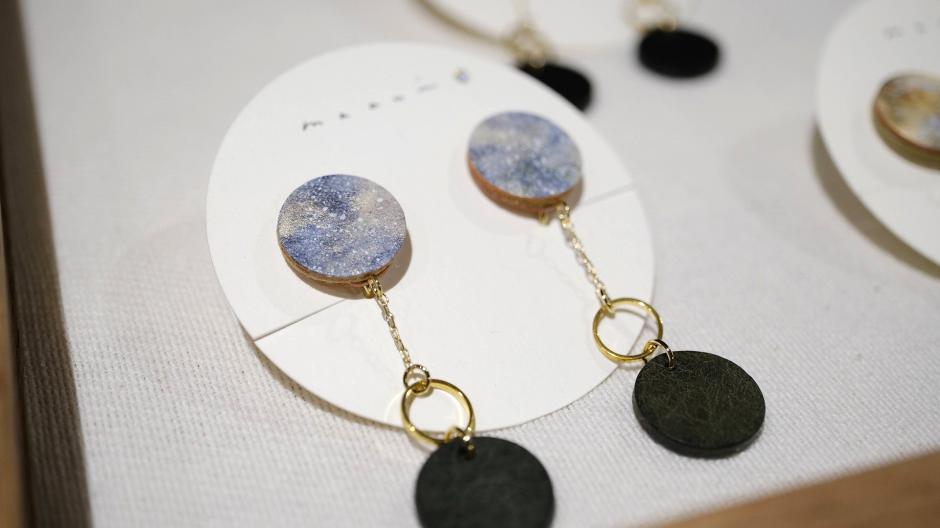 移り変わる空模様のように、さまざまな彩りがほどこされた革をポイントに使って丁寧に作られた「maani」さんの革アクセサリーと革小物です。