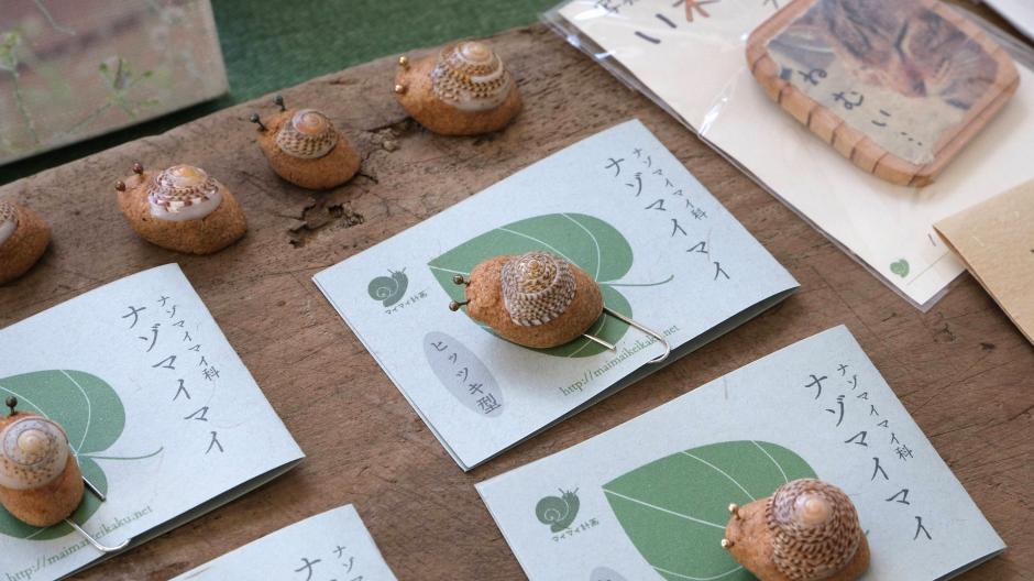 知ってるようで意外と知らない、身近な生き物にフォーカスした「マイマイ計画」さんの作品たち。小冊子やポストカード、ホンモノの生き物を使ったブローチなど、ふだんのくらしがちょっぴり楽しくなるアイテムが並びます。