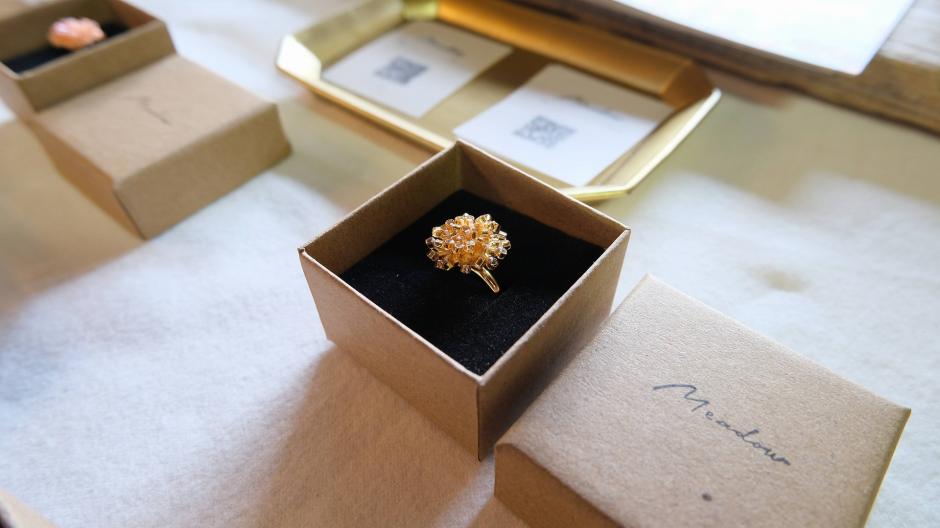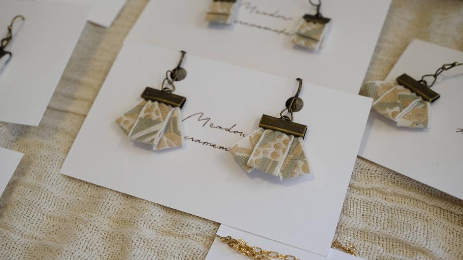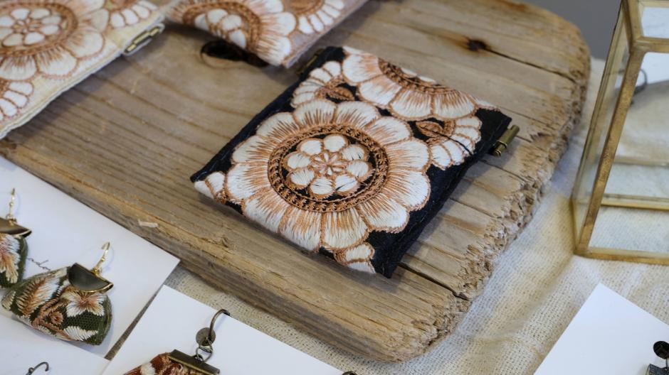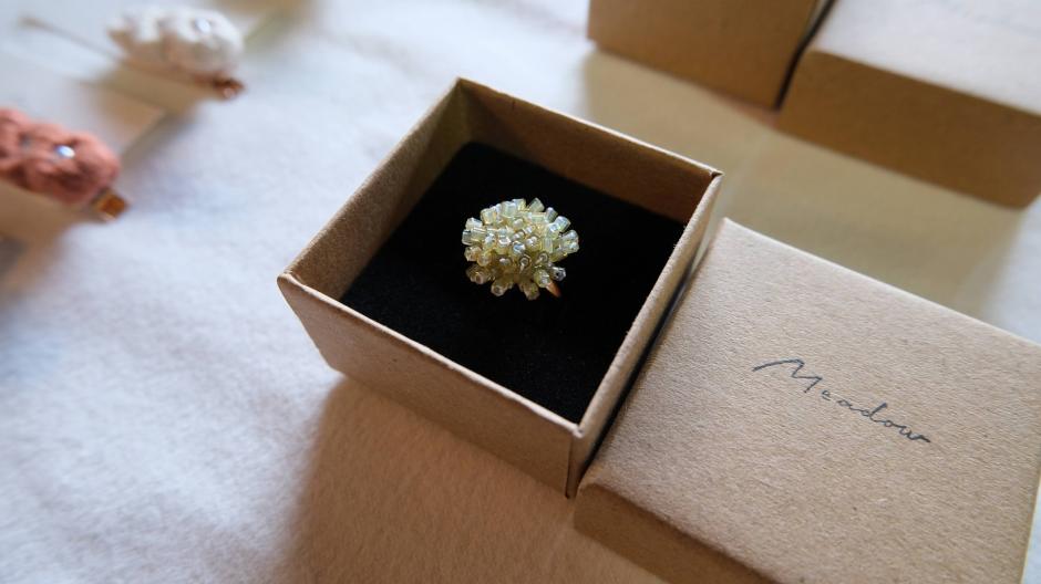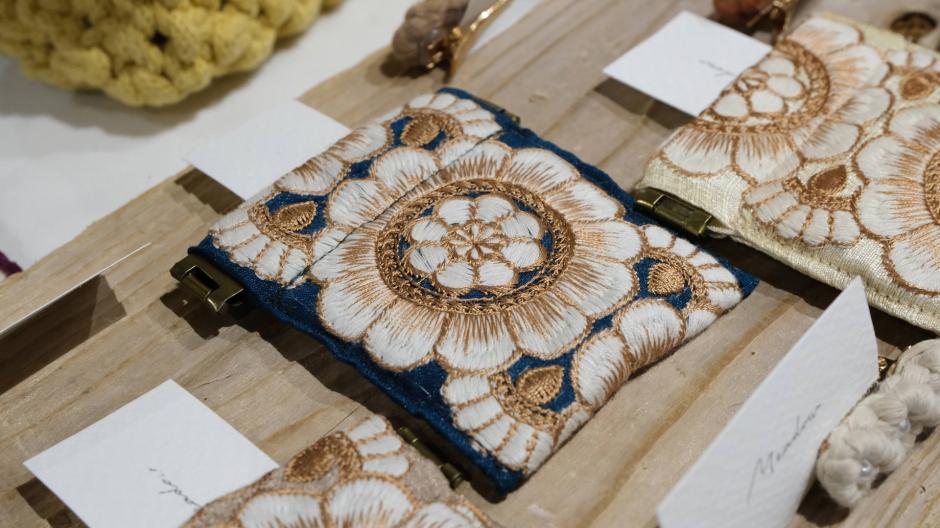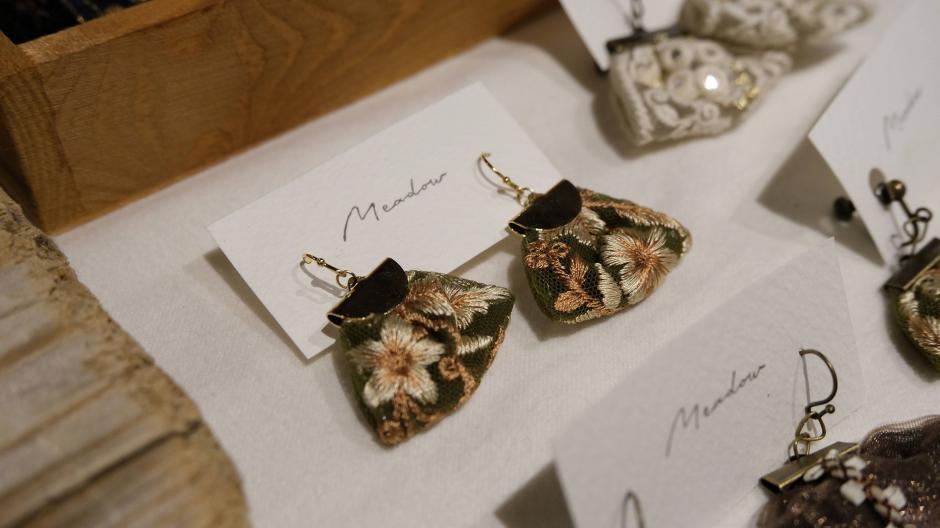 インド刺繍を使った小物たちと、マクラメ編みのバッグが並ぶ「Meadow」さん。ヴィンテージパーツを使った素敵なアクセサリーも。作家さんの好き!がたくさん感じられる作品たちです。