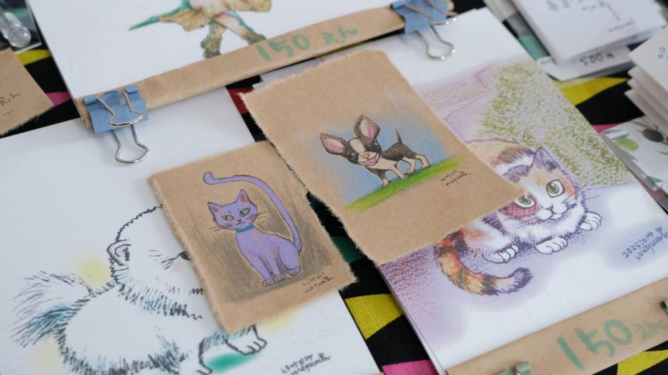 「アトリエMg」さんのペン先からさらさらと描き出されるイラストたちが小さな本や塗り絵本になりました。手のひらサイズのアートを楽しんでください。