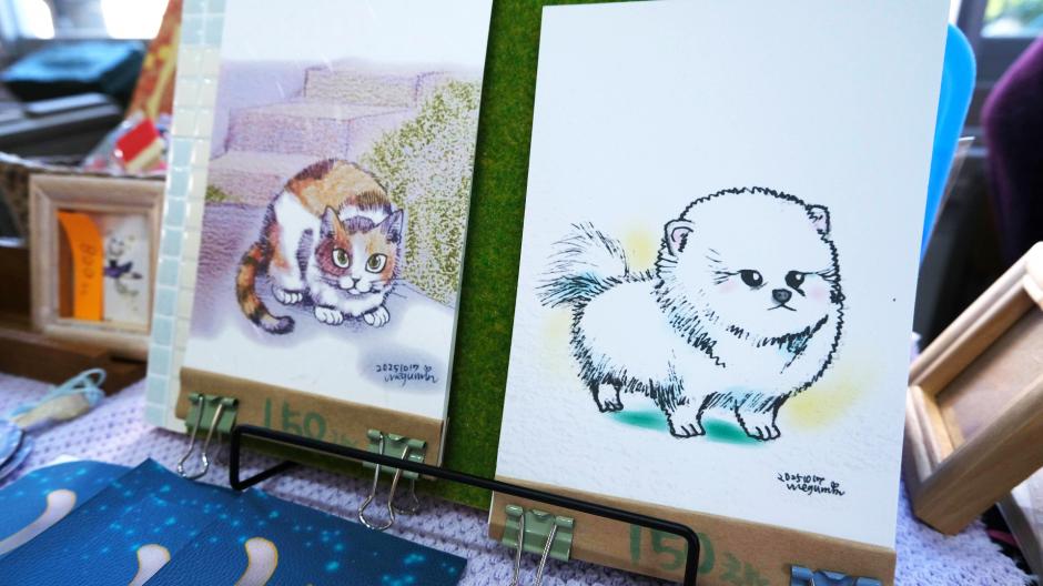 イラスト塗り絵・絵本と、動物似顔絵かきます。お宅にペットがおられる方、お声かけください。