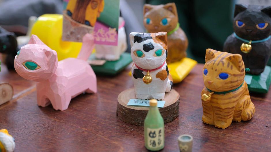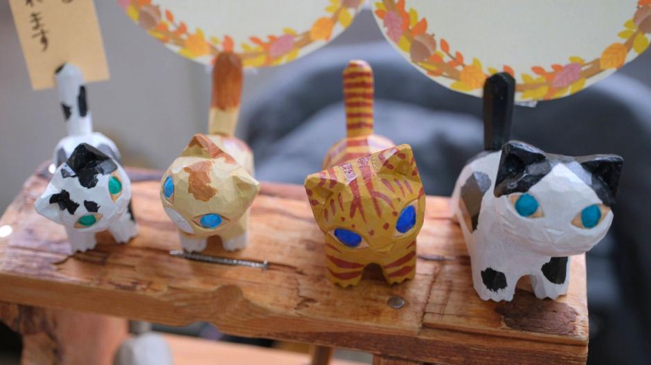 「もくもく堂」さん手彫りの、木彫りの動物や人形たちは、愛嬌たっぷり。カラフルな色付けにも元気をもらえます。