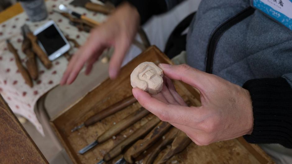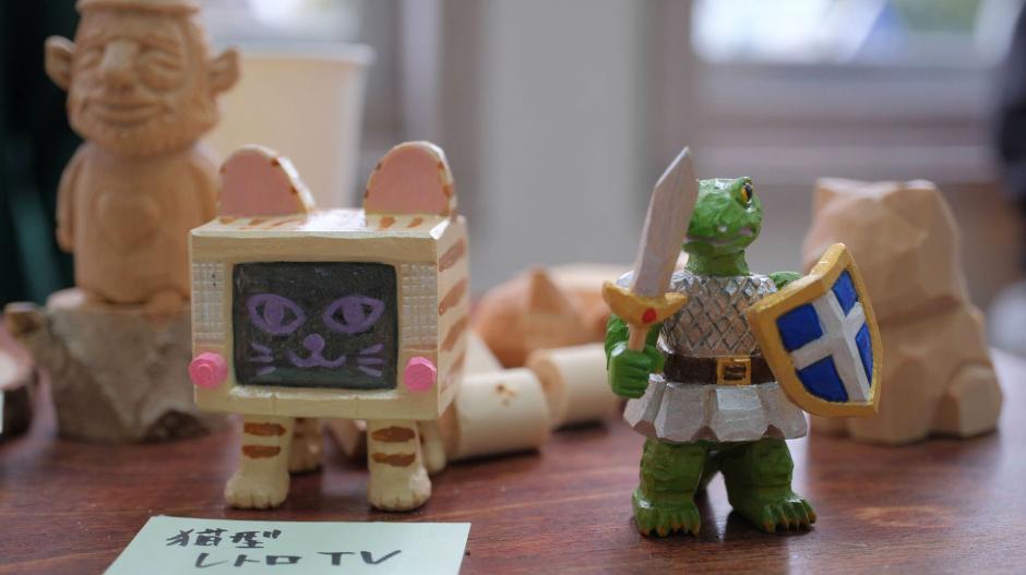 もくもくと木を彫って、可愛らしい動物やお人形を制作しています