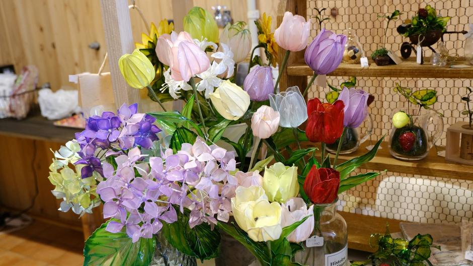 「Papa-r」さんのディップアートの花々はみずみずしくてずっと美しいままです。部屋に飾って見て楽しんでください。ほかにもたくさん、生活を彩る雑貨を作られています。