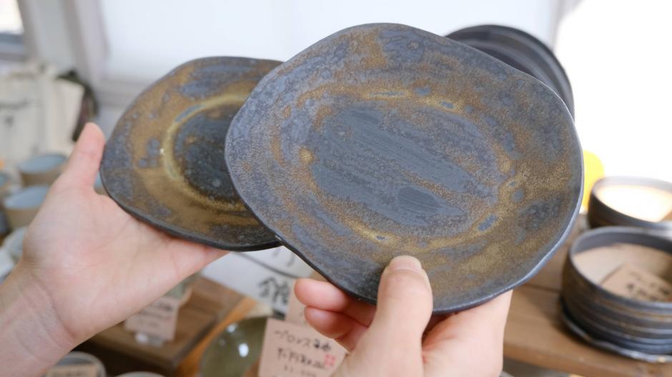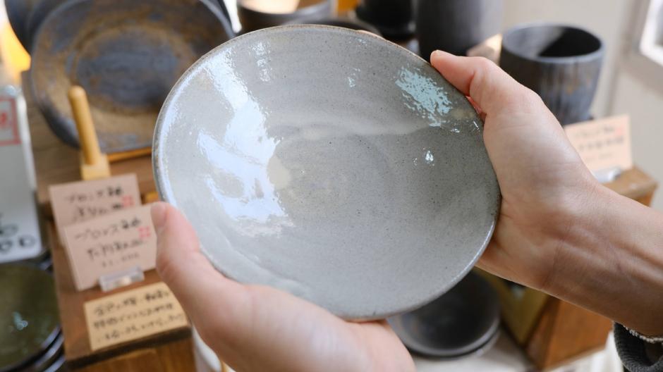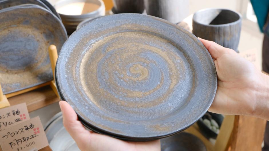 「陶芸工房プラス」さんの器は手のひらにしっくりとなじみます。釉薬の違いなどで、色の濃いもの薄いもの、きらきらしたもの、様々な表情の器があり、食卓を豊かにしてくれますよ。