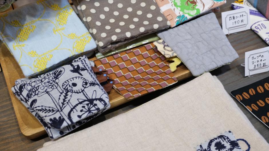 布のコラージュから、紙のコラージュへ。布と糸、紙とペンを使って様々な表現をカタチにしている「ぷりぷれ舎」さん。思わず読み込んでしまう小さな冊子「ZINE」や、布もの雑貨が並びます。