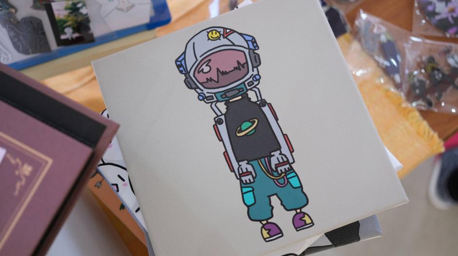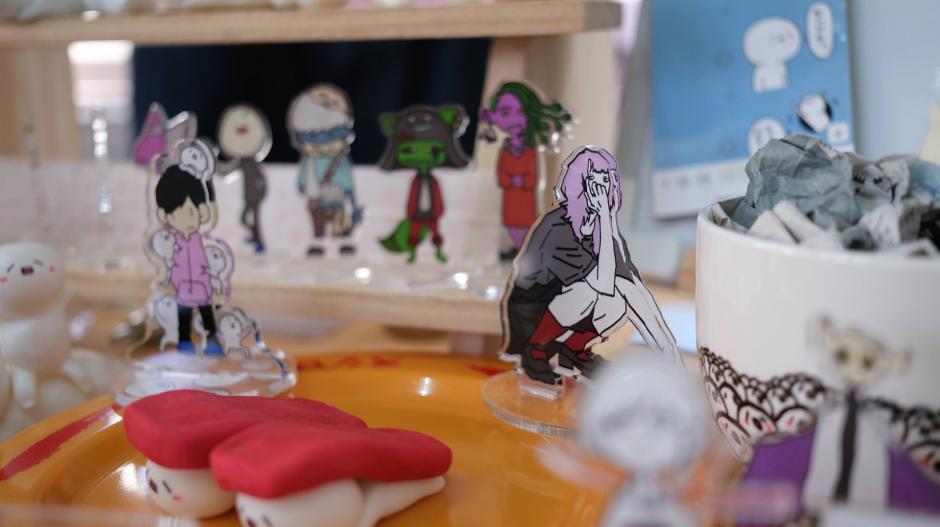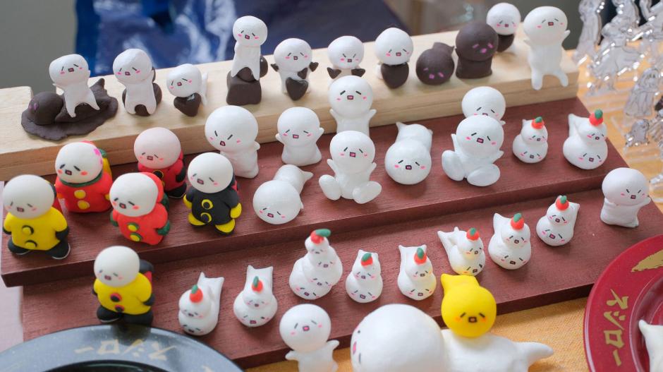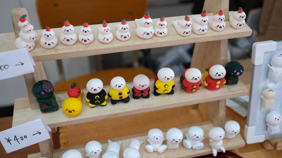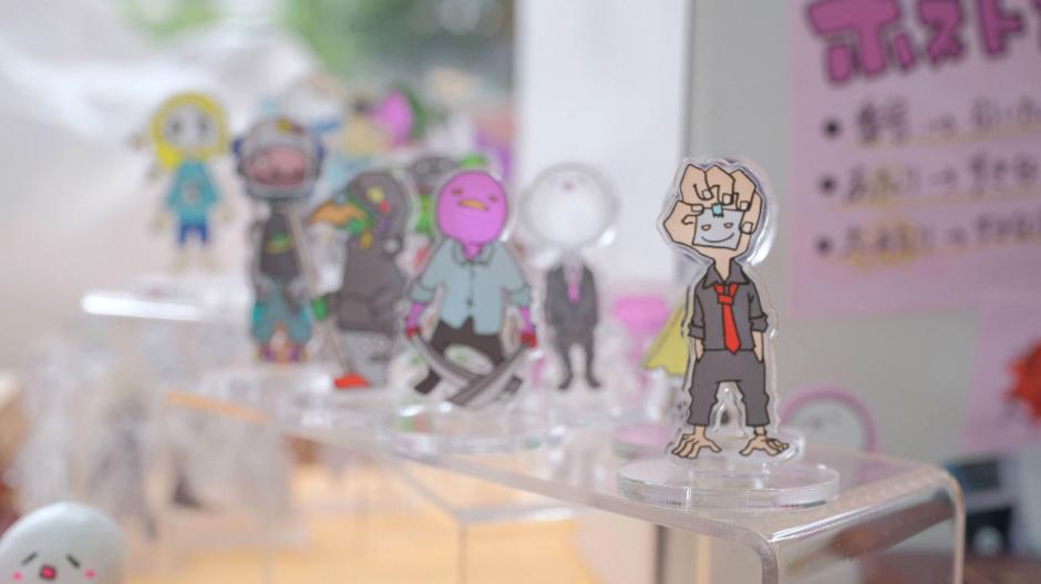 ぷぐちまるというキャラクターを中心に、イラストのフォトカード、ステッカーや樹脂粘土で作成したフィギュアを用意しております。